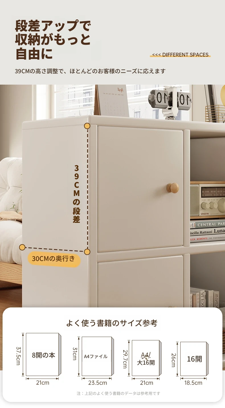 【七格キャビネット-底部拡張】暖白色80*23*100cm品質密度板