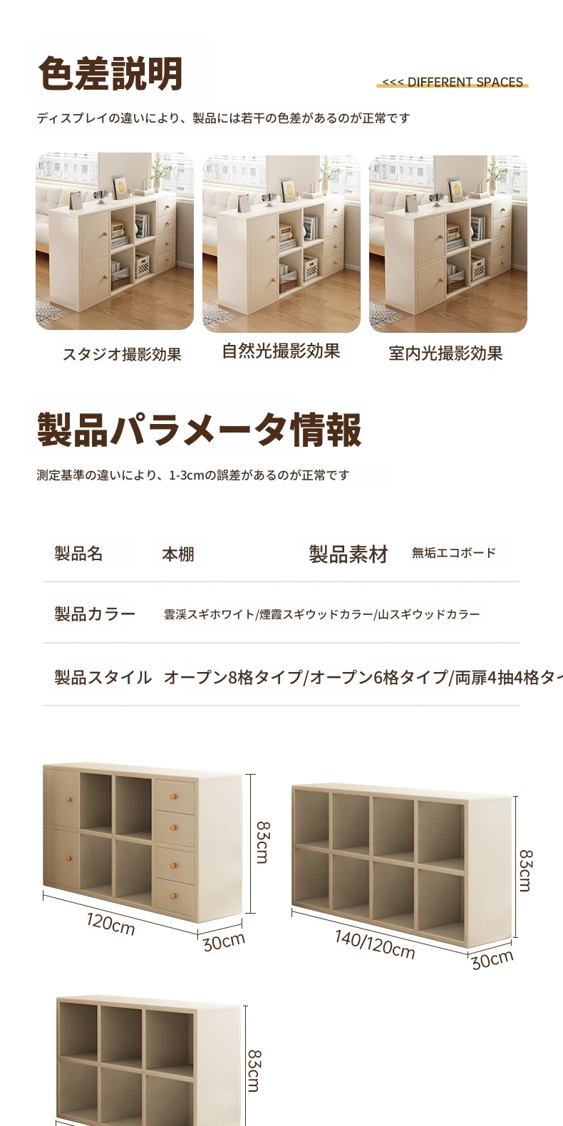 【八格キャビネット⭐無垢エコ板】云溪白120*30*80cmカライク代替品