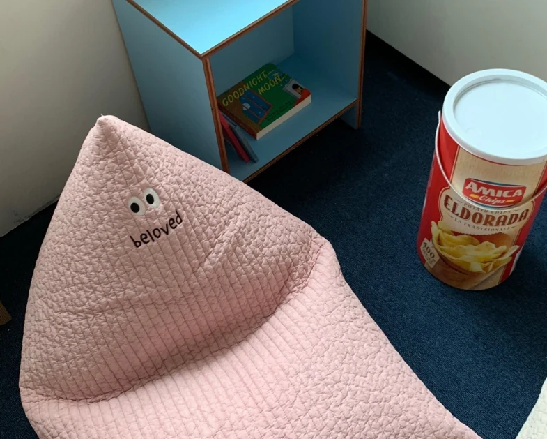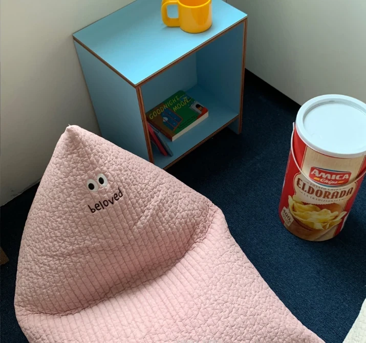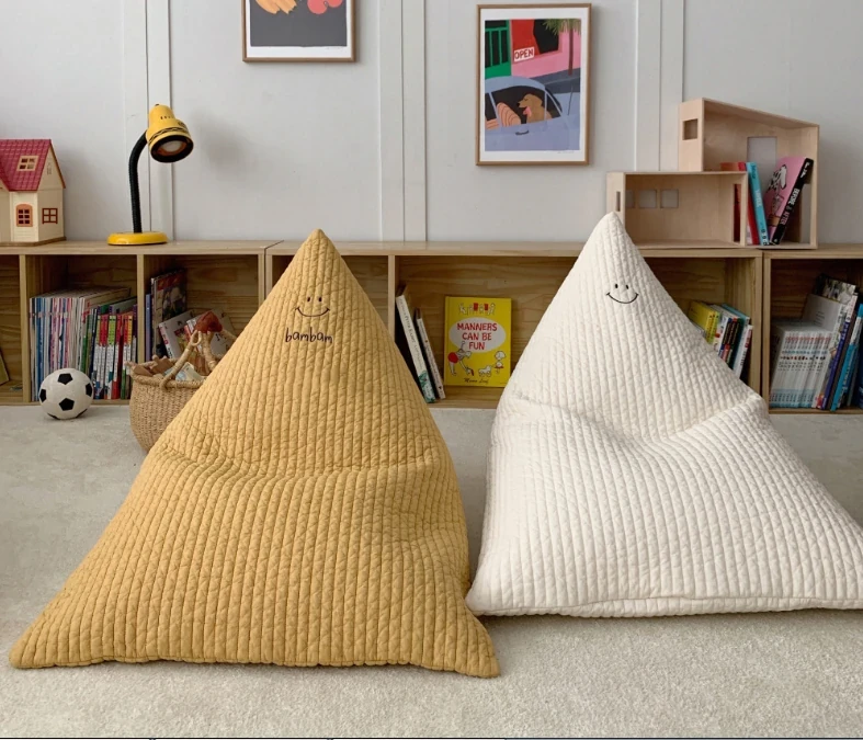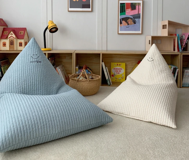 インスタ風!韓国製の親子で楽しむ笑顔デザイン、高品質キルティングコットン製の洗えるビーズソファ。子供の読書タイムにぴったりな楽々ソファ!