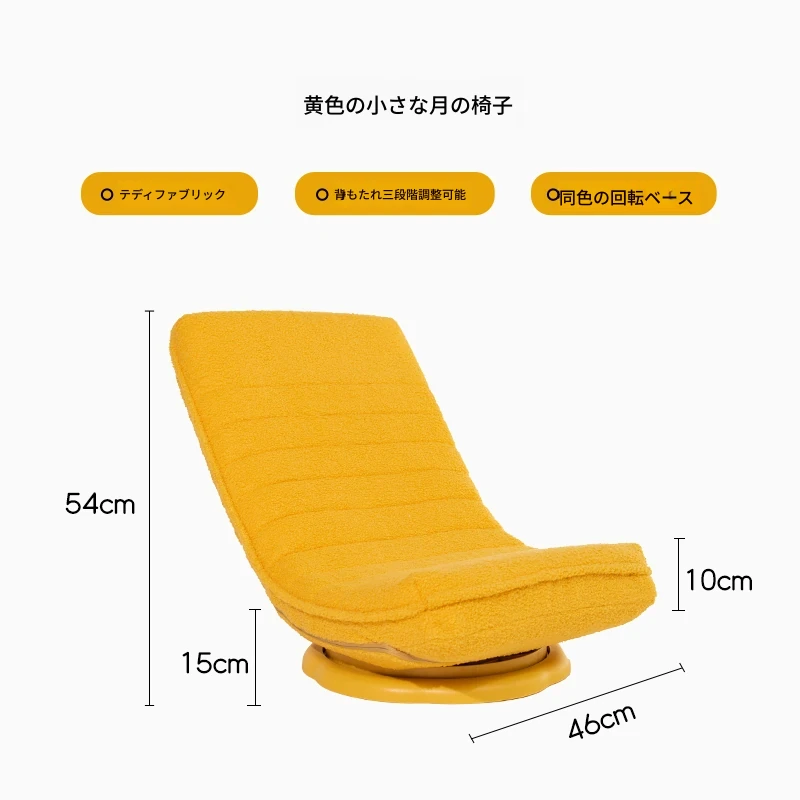 小型月亮椅明るい黄色【肌触りの良いテディベアフリース生地】【全身同色布】