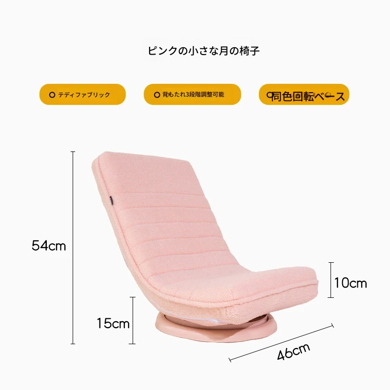 小型月亮椅ピンク色【肌触りの良いテディベアフリース生地】【全身同色布】