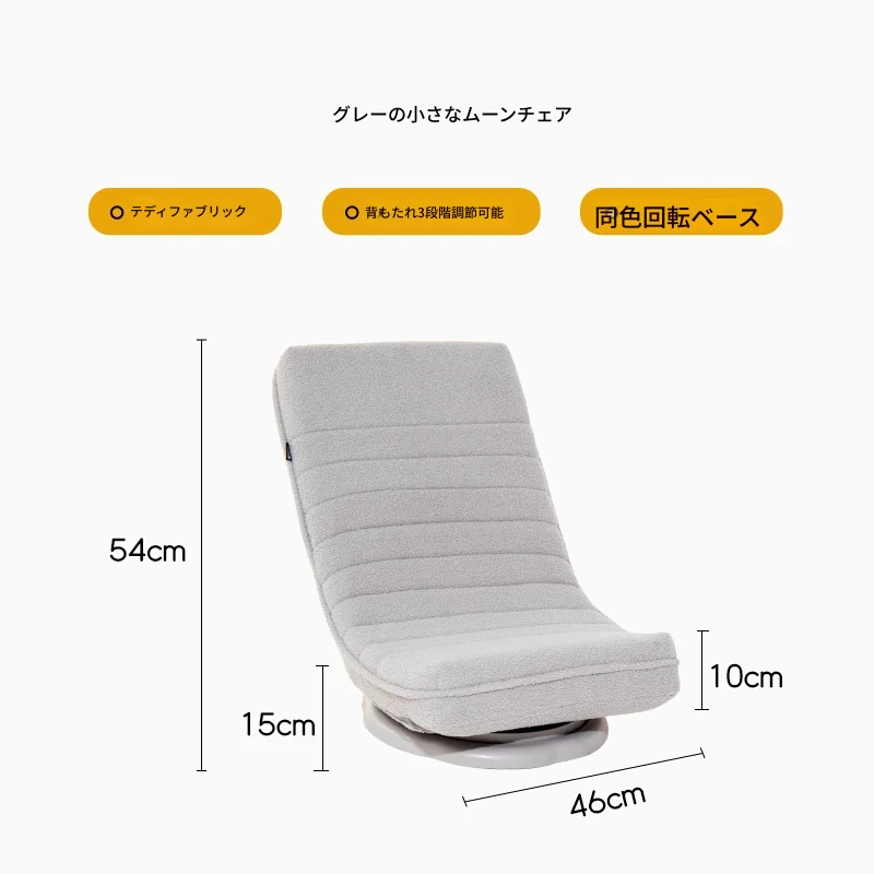 小型月亮椅灰色【肌触りの良いテディベアフリース生地】【全身同色布】