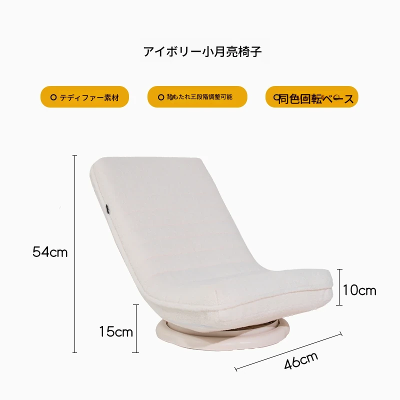 小型月亮椅アイボリー色【肌触りの良いテディベアフリース生地】【全身同色布】