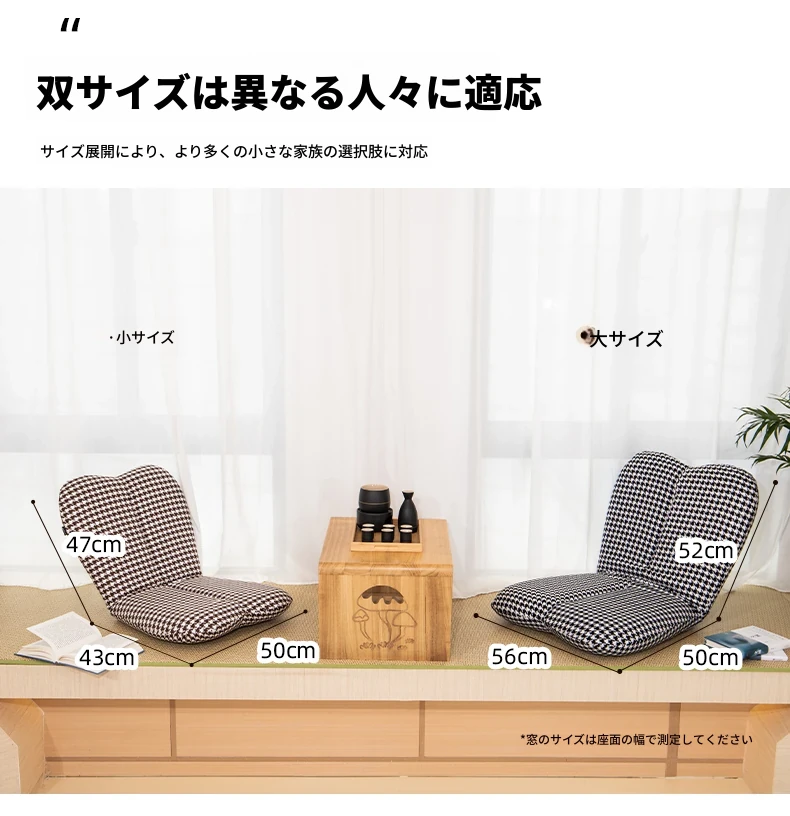 楽々日記スタイル!窓辺やバルコニーにぴったりのリラックスソファ!和風畳スタイルで、洗えるクッション付きの背もたれ椅子。快適なひとときをお届けします!
