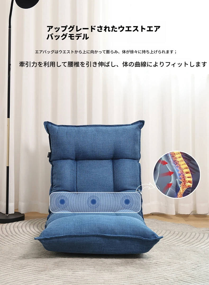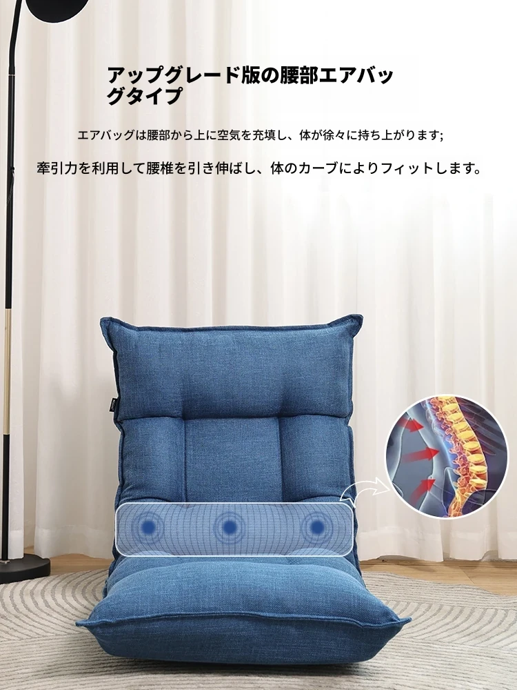 ダークブルー-アップグレード豪華エアバッグタイプ-肌触りの良い擬麻+腰、頭調整可能 腰部をサポート