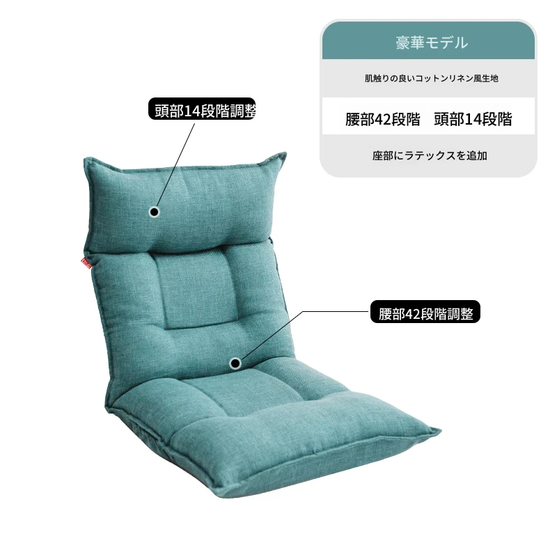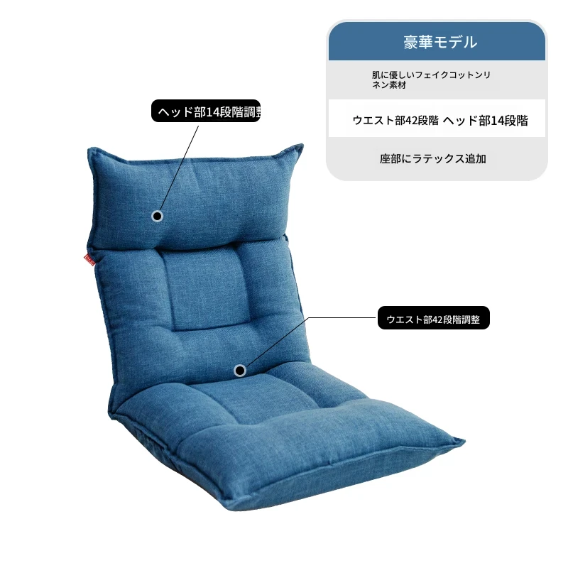 豪華湖ブルー-肌触りの良い擬麻+腰、頭調整可能+ラテックスクッション