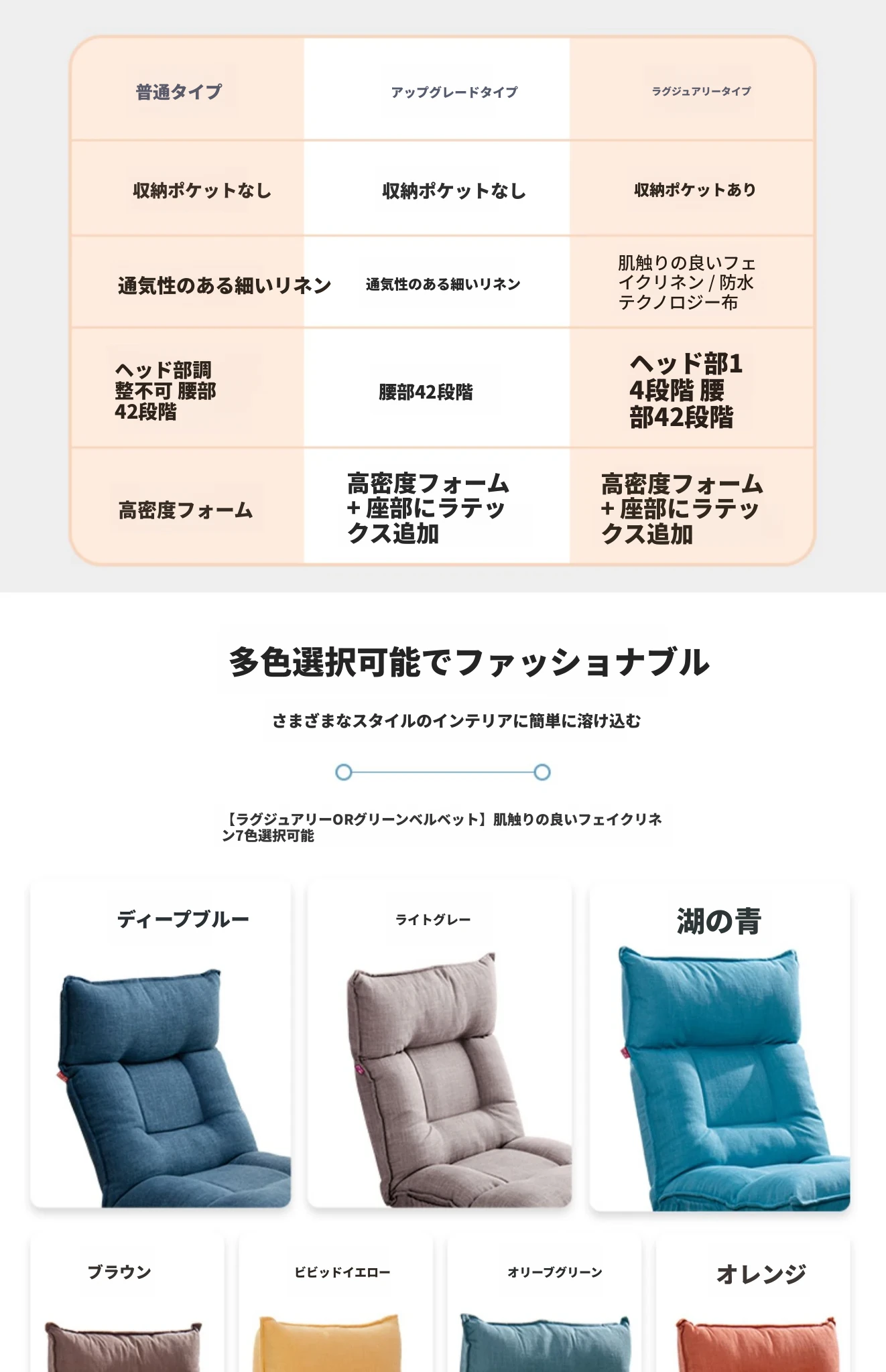 豪華オレンジ-肌触りの良い擬麻+腰、頭調整可能+ラテックスクッション