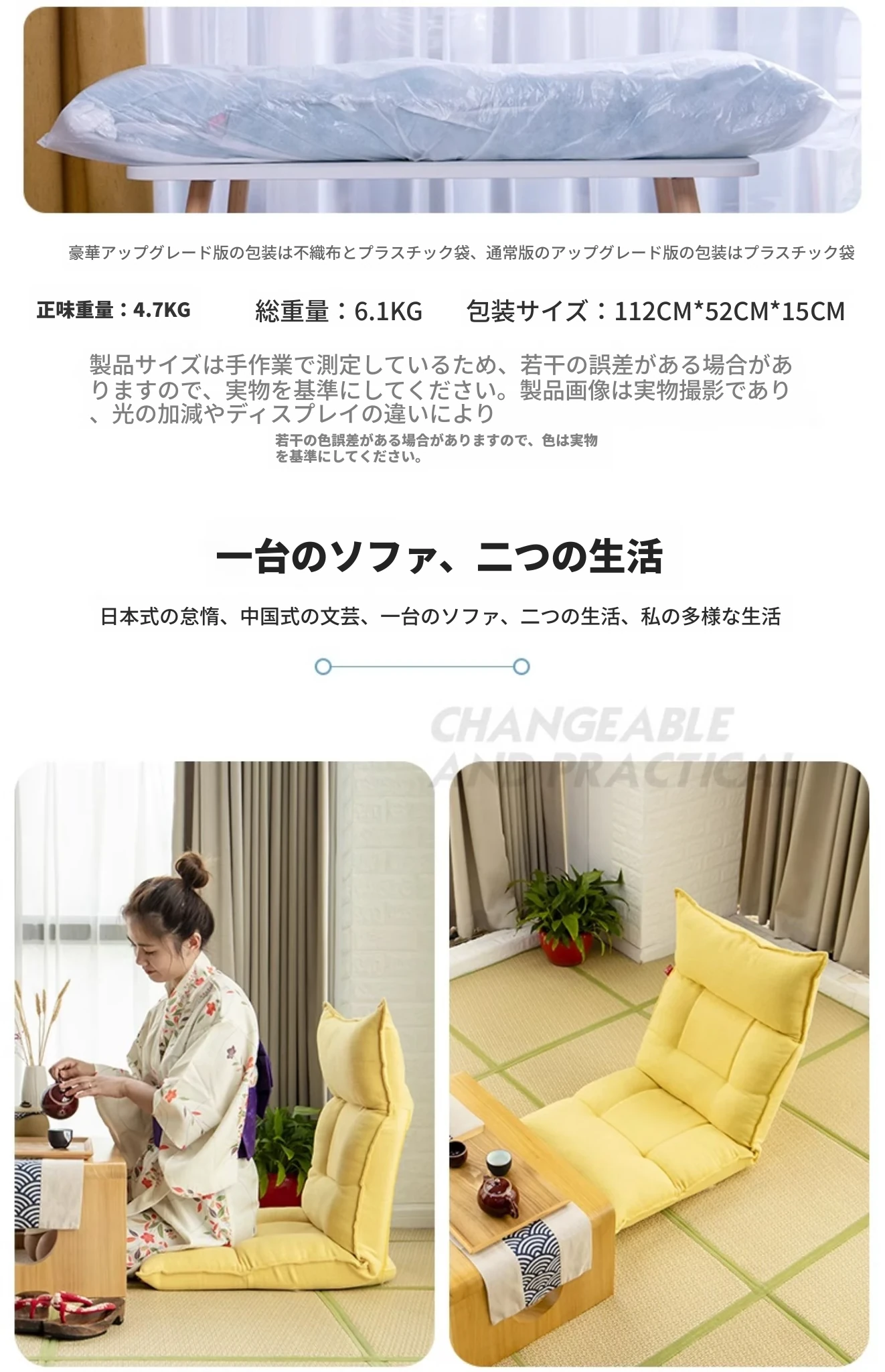 リラックスできる折りたたみソファ!一人用の和風タタミシート、寝室やバルコニー、窓辺にぴったり。心地よい背もたれで、あなたのくつろぎ空間を演出します!
