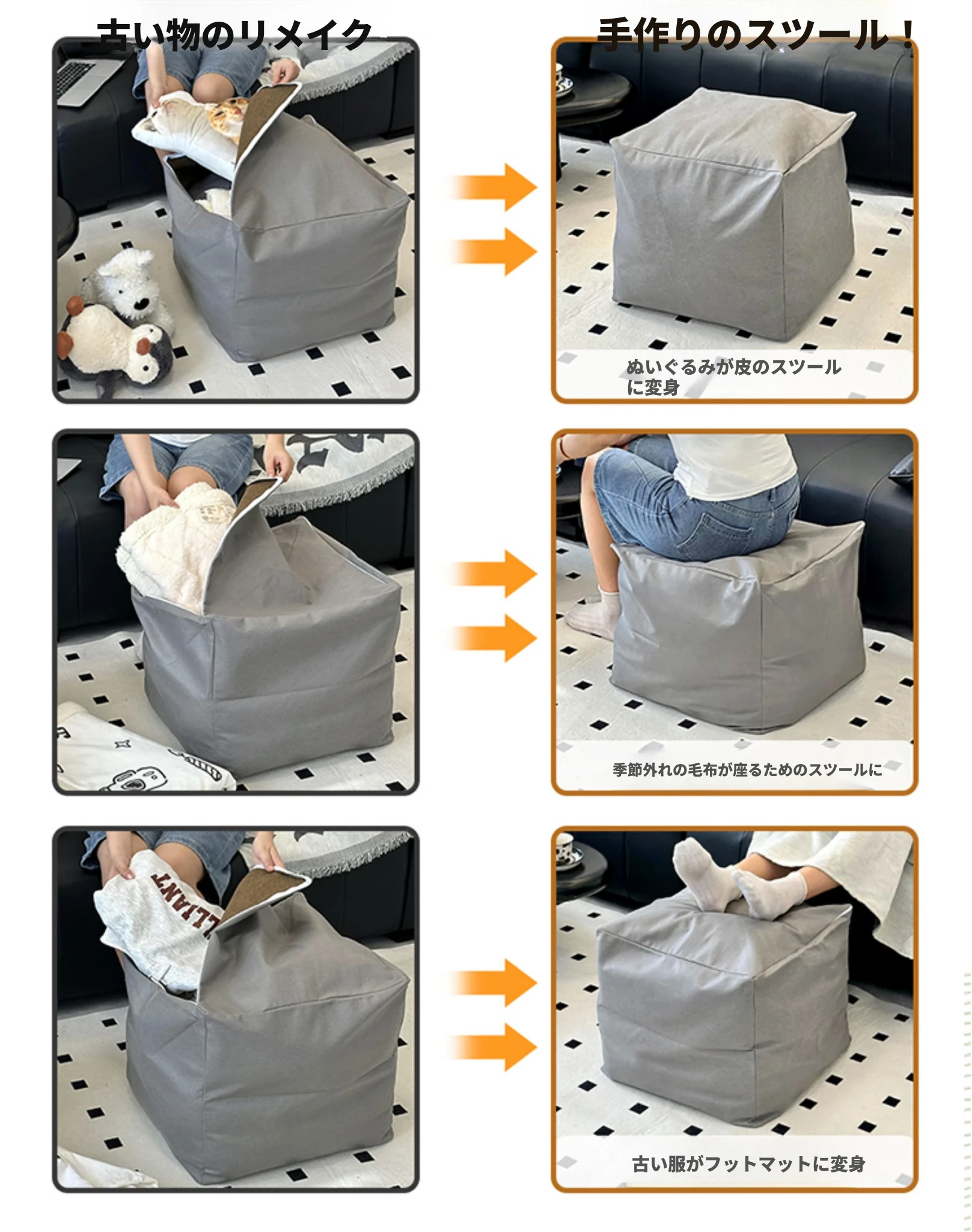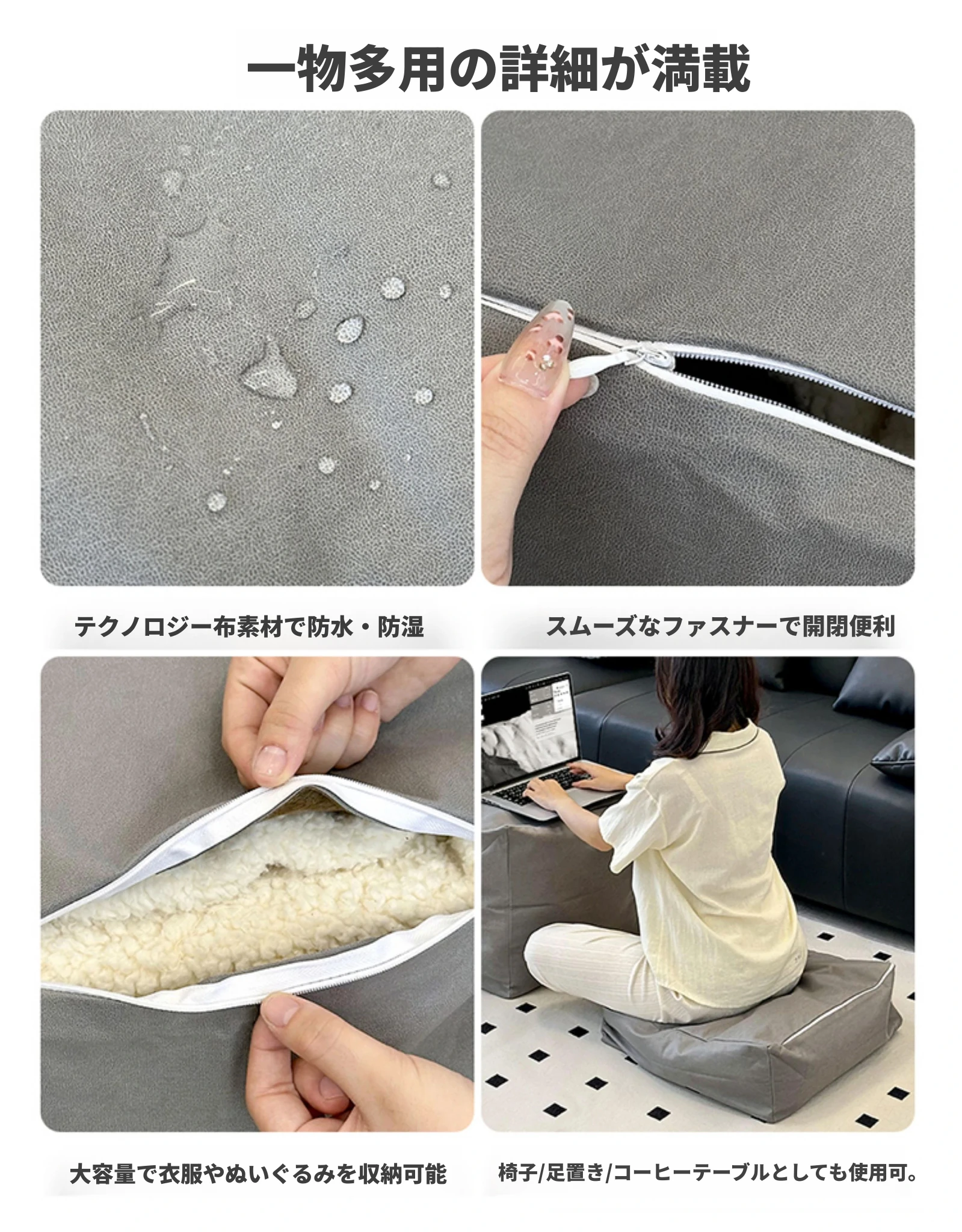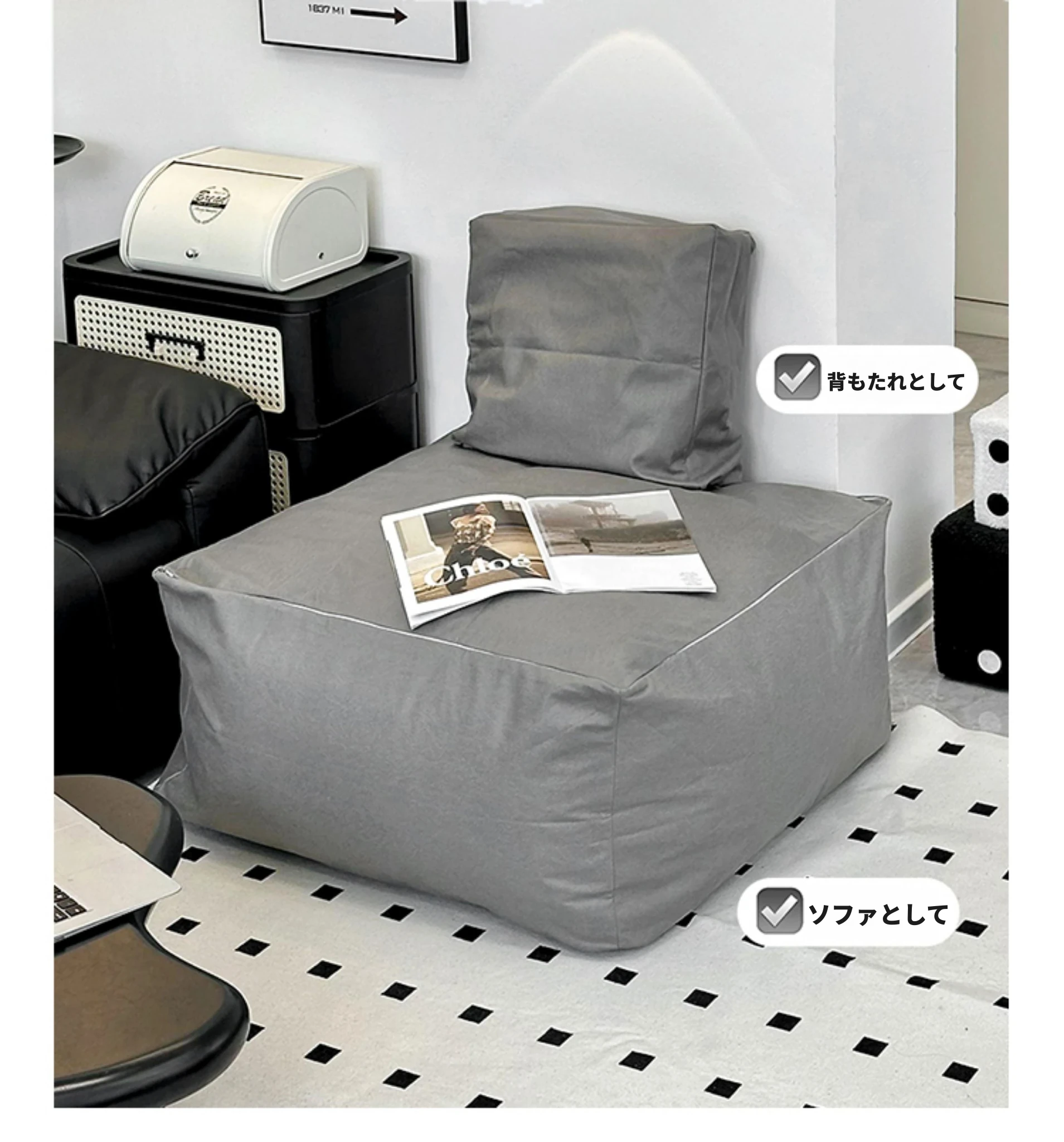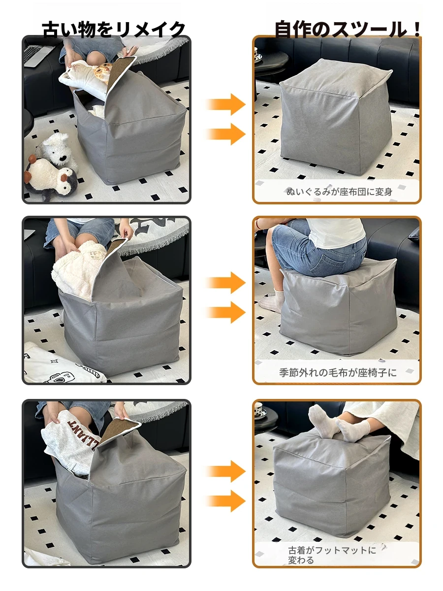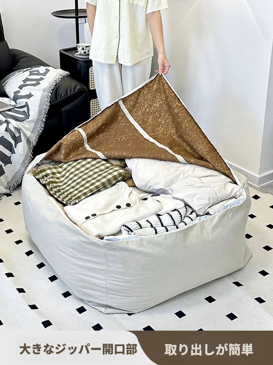 省スペース!リラックスできる懶人ソファー - 収納付きで旧衣類もスッキリ整理!和室・リビング・寝室に最適な小型座布団・クッション。快適な腰当てで、くつろぎの時間をお楽しみください!