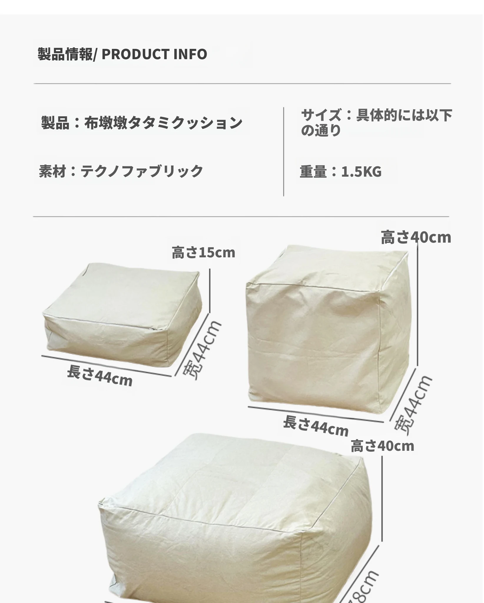 布製タタミ収納スツールアイボリー大サイズ