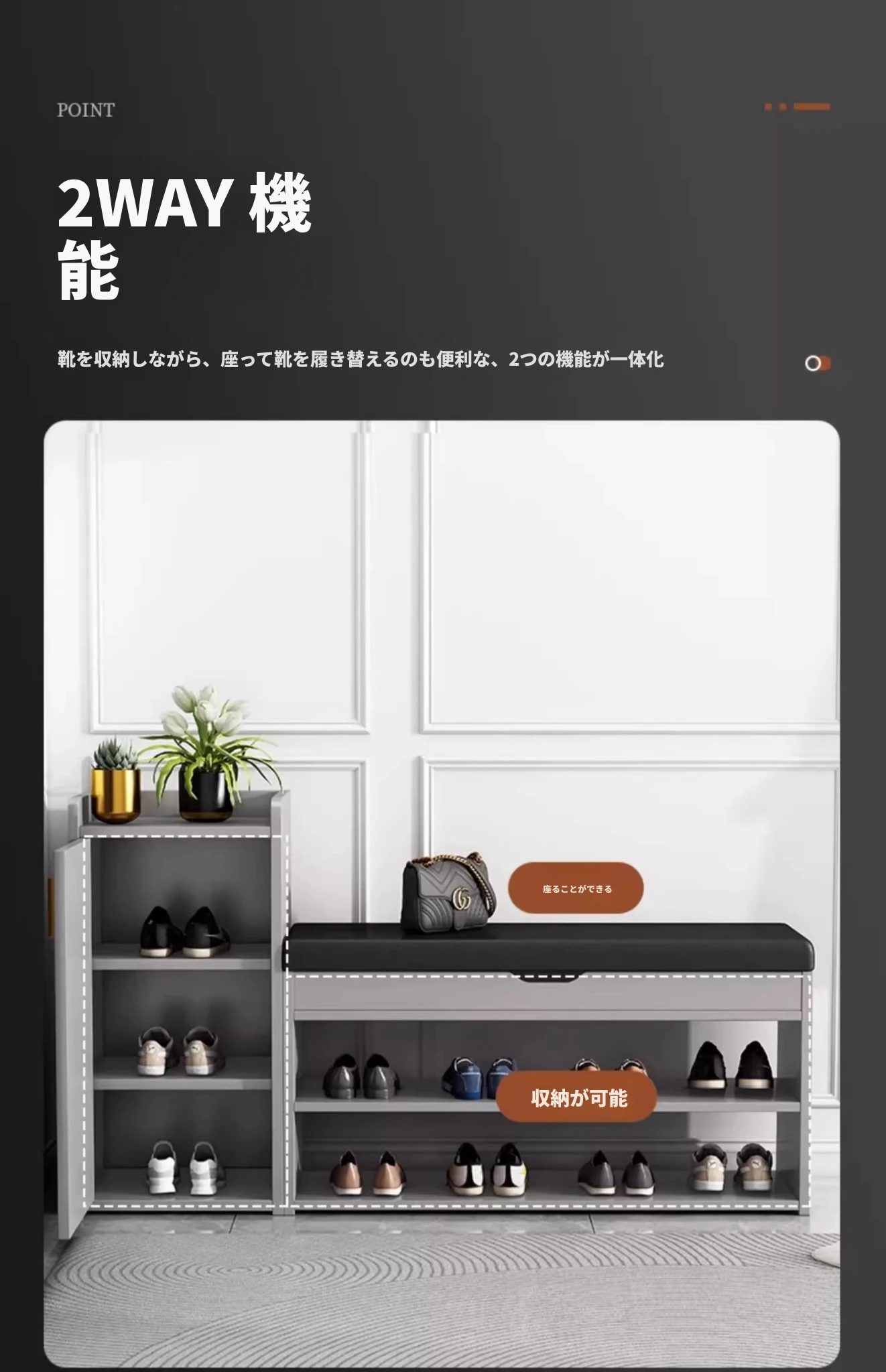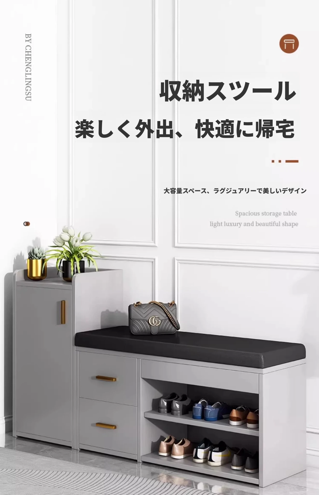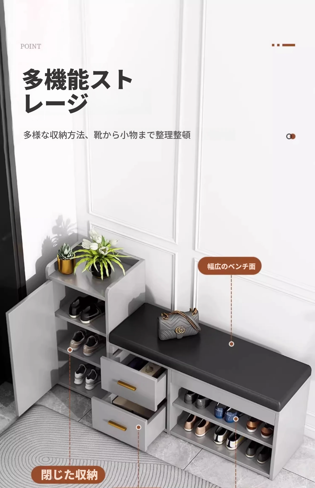 玄関用おしゃれな靴置きベンチ - 高級感溢れるイタリアンデザイン、座れる靴棚一体型、快適な靴の着脱をサポート!あなたの家の入口にぴったり!