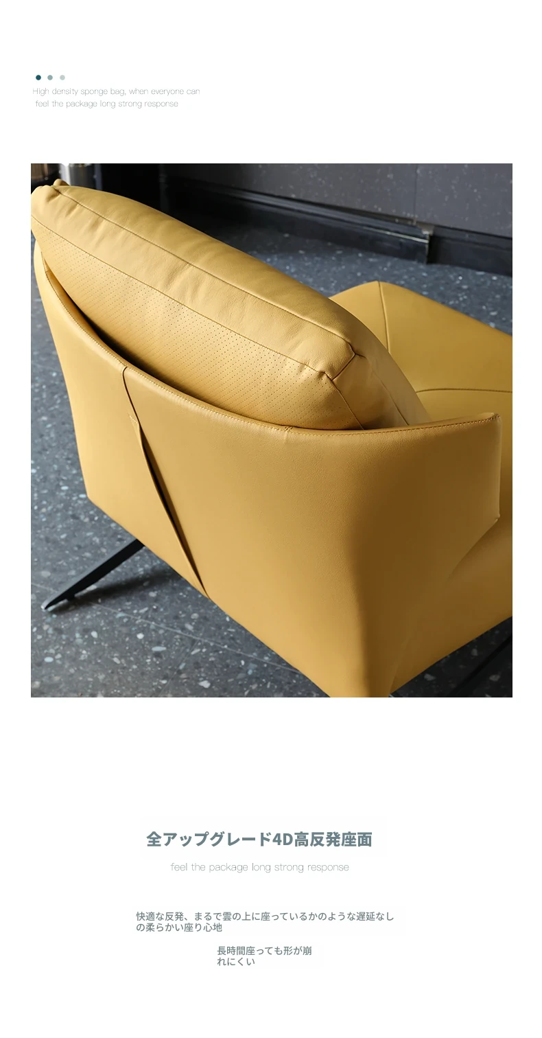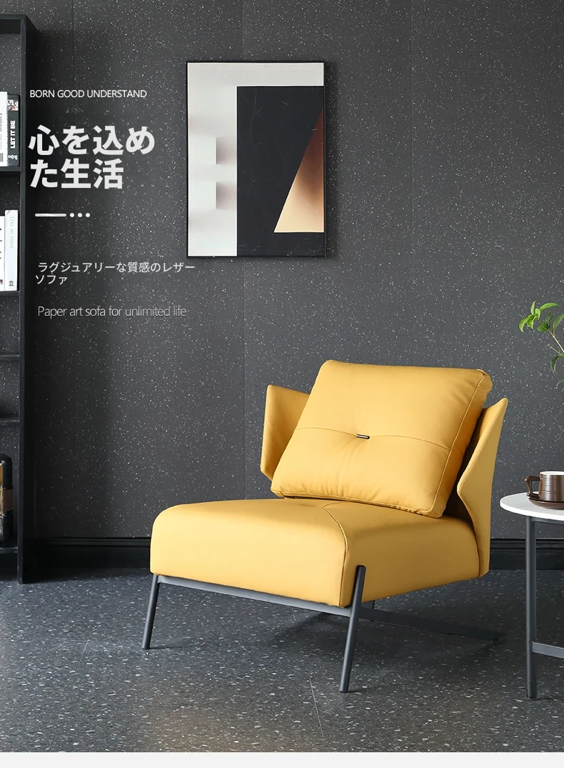 ミニマルデザインの本革一人用ソファチェア - シンプルでモダンな家庭用バルコニーやリビングに最適!小さい部屋でも映えるデザイナー人気のリラックスチェア。