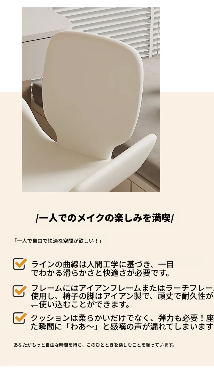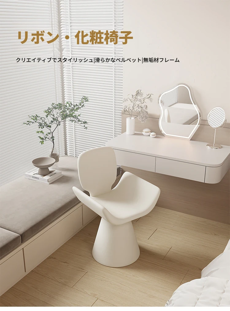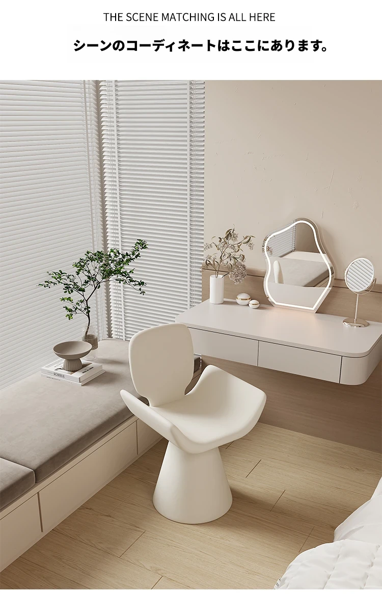 シンプルで洗練された化粧椅子 - 高級感あふれる回転式ドレッシングスツール!女の子の寝室にぴったりなクリーム風デザイン、快適な背もたれ付き。おしゃれなダイニングチェアとしても大人気!