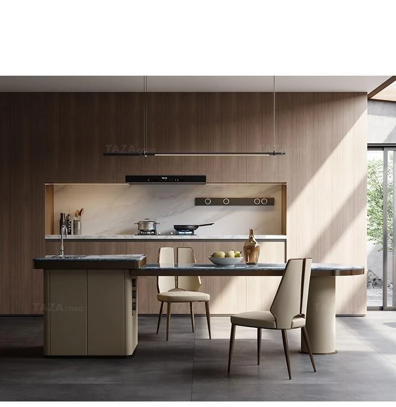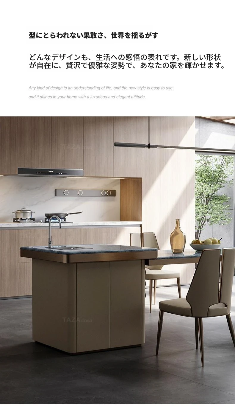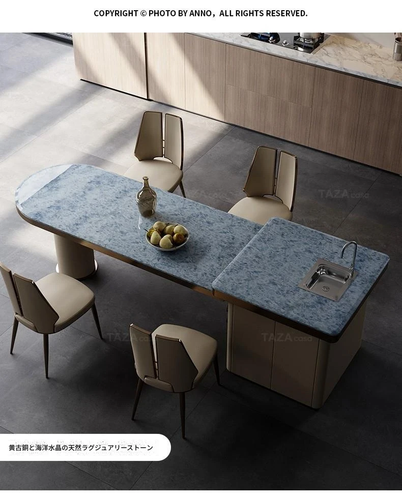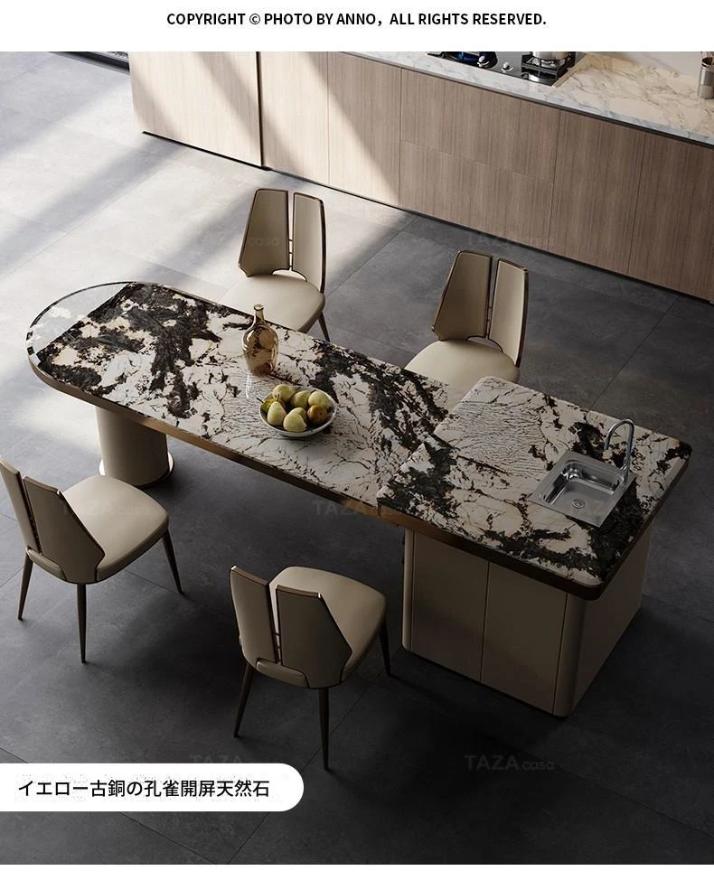 洗練されたミニマリズム!高級感溢れるイタリア製アイランドダイニングテーブル - モダンな別荘スタイルのリビングにぴったりの高端ブランド家具。