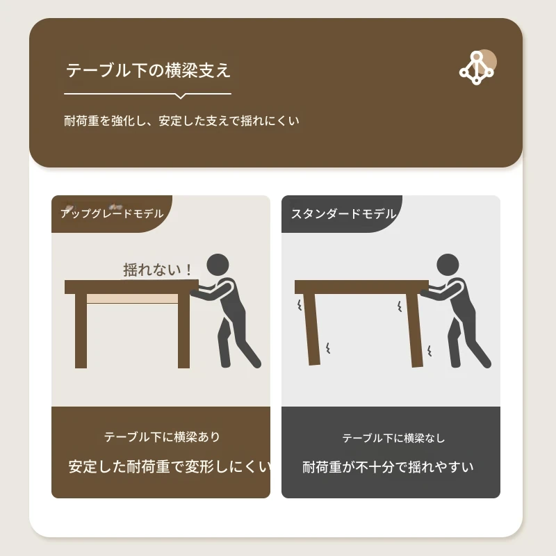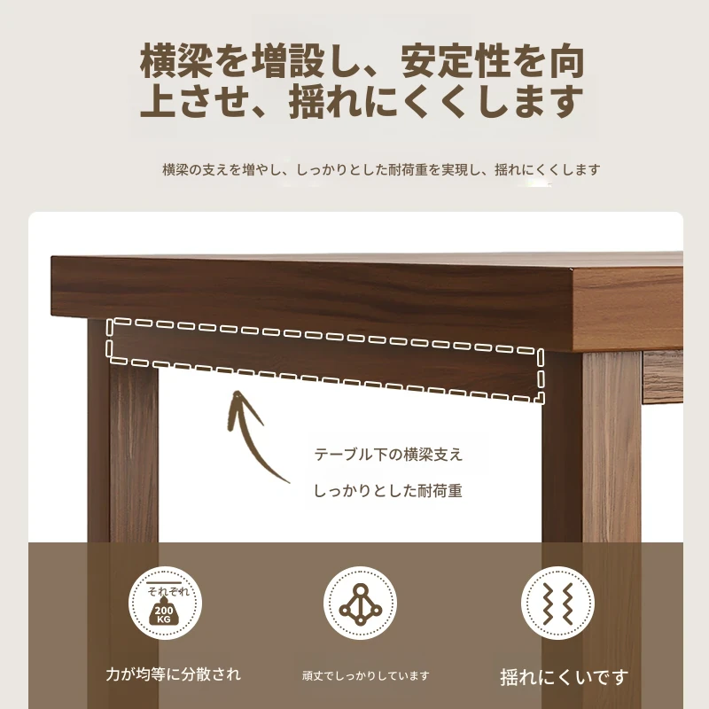 【無垢材脚】ナチュラル色120*60*75【50MM厚】