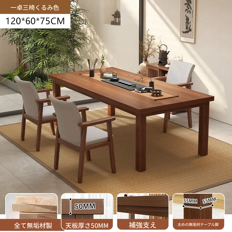 【茶の香り漂う♥一卓三椅子】ウォールナット色140*60*75【無垢材脚】