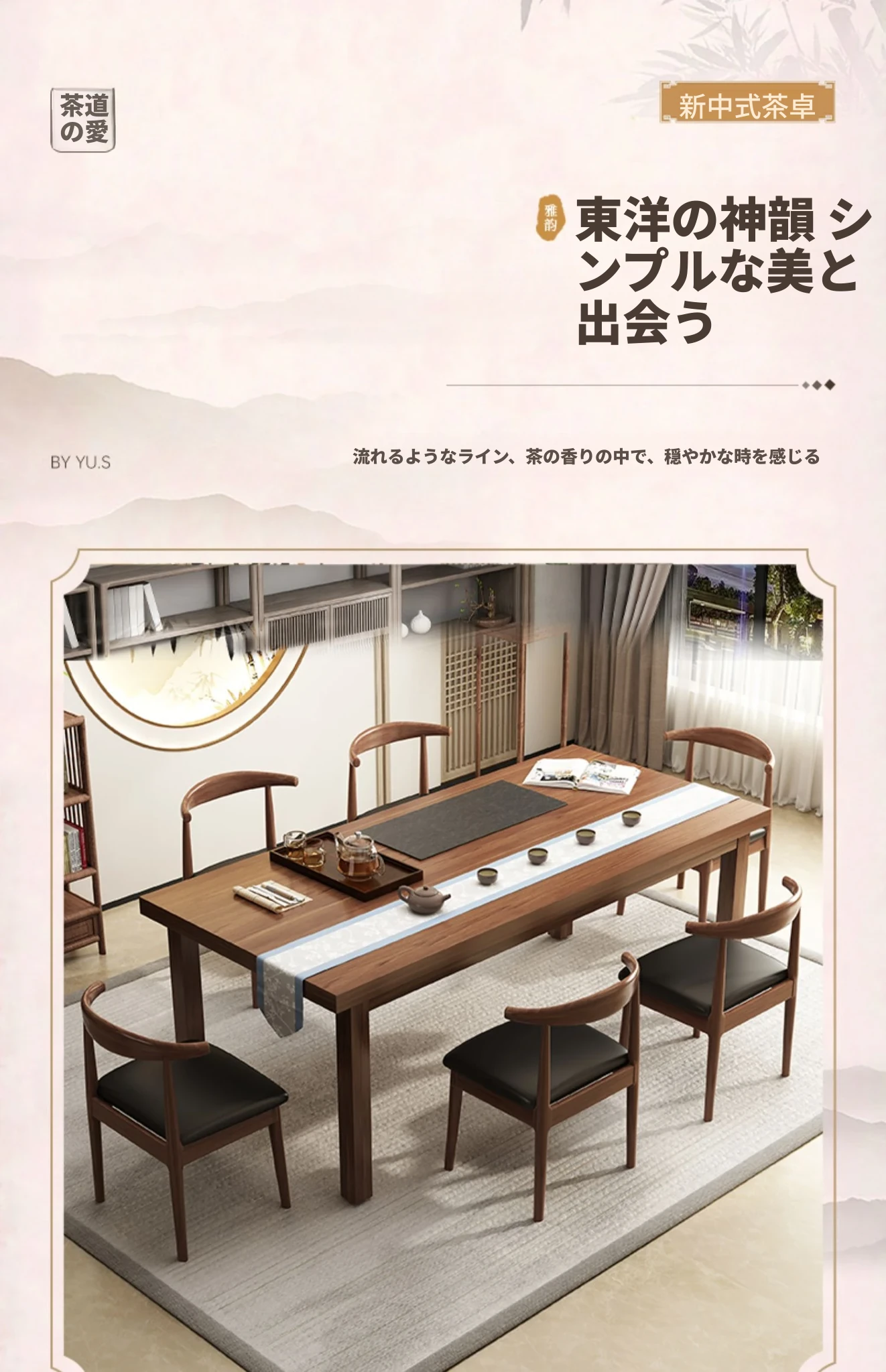 新中式大板茶桌|おしゃれなリビングやバルコニーに最適!家庭用・オフィス用にもぴったりなティーテーブル|茶会やビジネスミーティングに最適なデザイン!