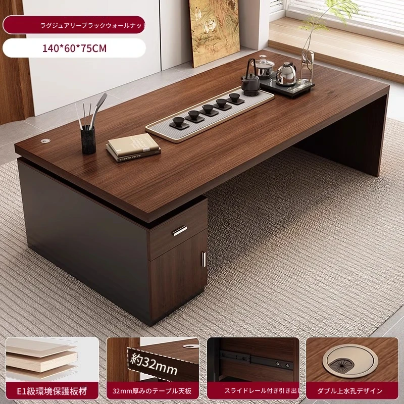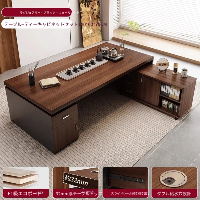 【ティーキャビネットセット】140*60ラグジュアリー野生黒胡桃+厚さ32天板