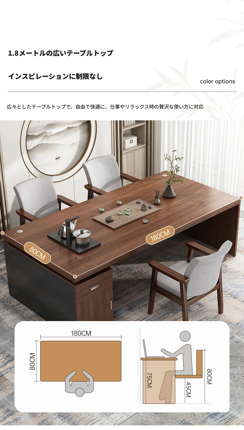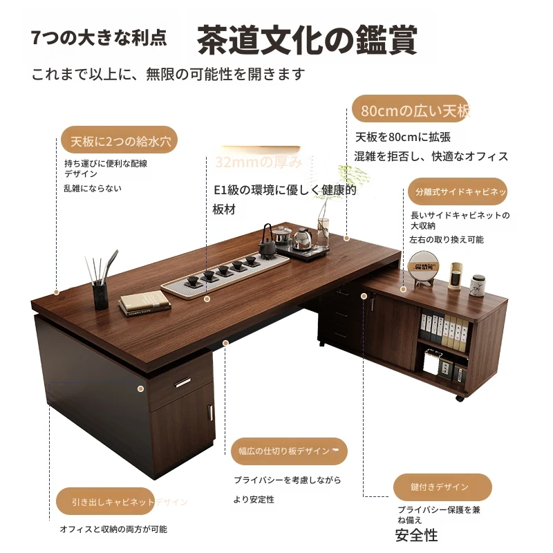 【ティーキャビネットセット】180*80ラグジュアリー野生黒胡桃+厚さ32天板