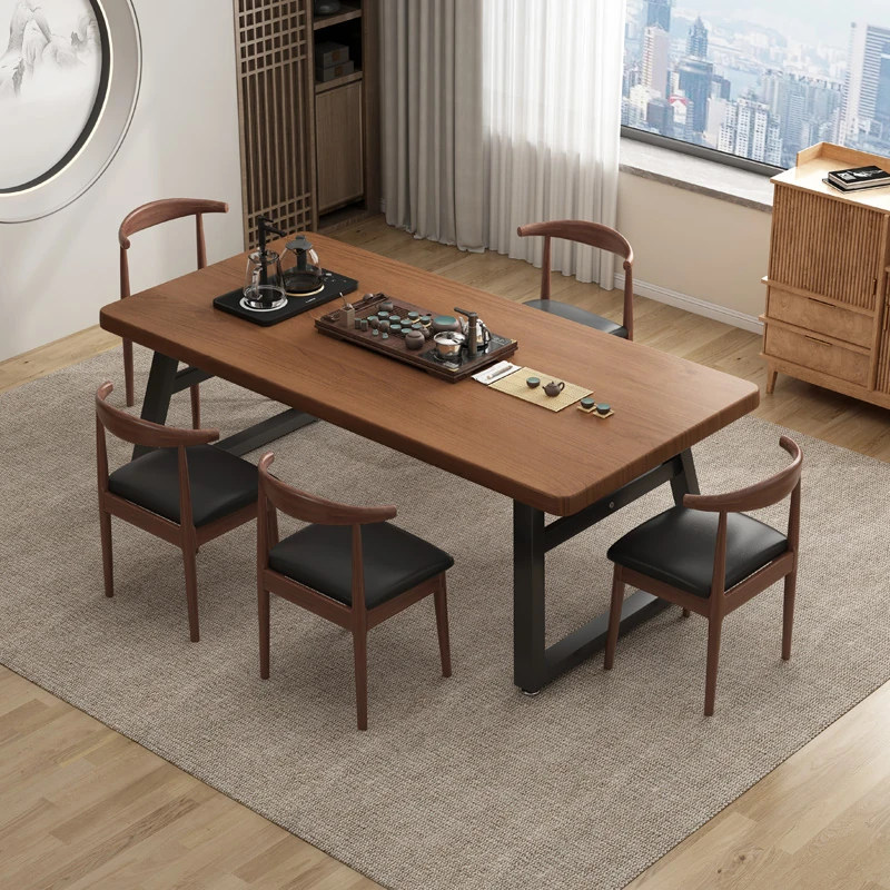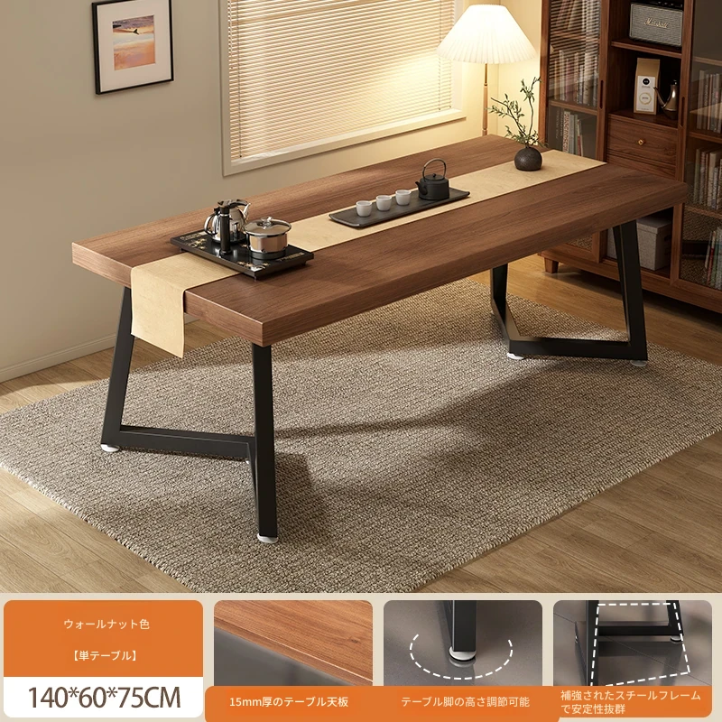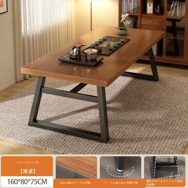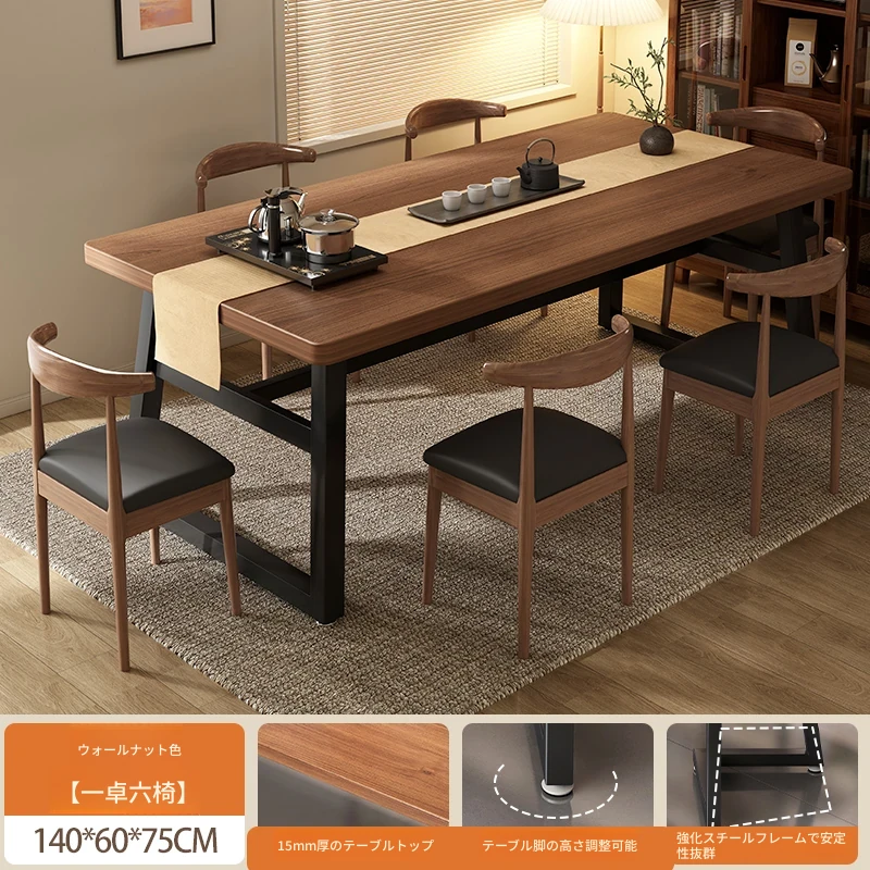【アップグレード強化版一卓六椅】ウォールナット色140*60*75★アイアンバッファロー椅子
