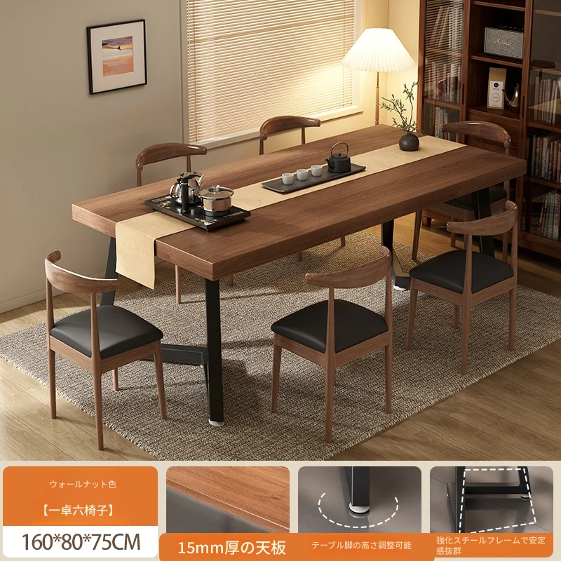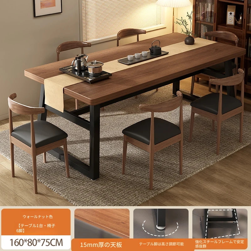 【アップグレード強化版一卓六椅】ウォールナット色160*80*75★アイアンバッファロー椅子
