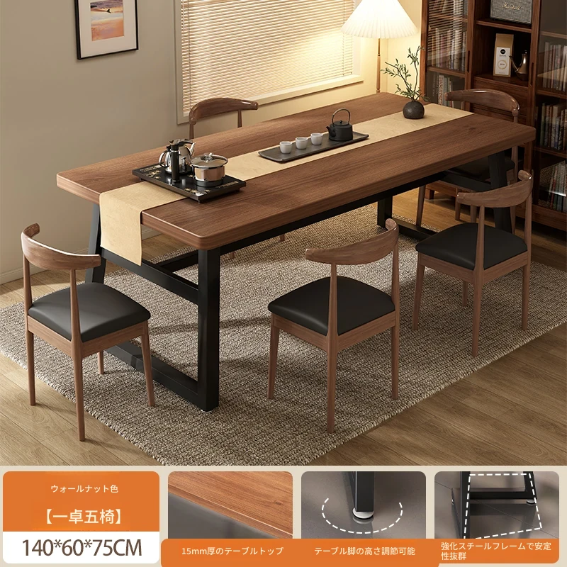 【アップグレード強化版一卓五椅】ウォールナット色140*60*75★アイアンバッファロー椅子