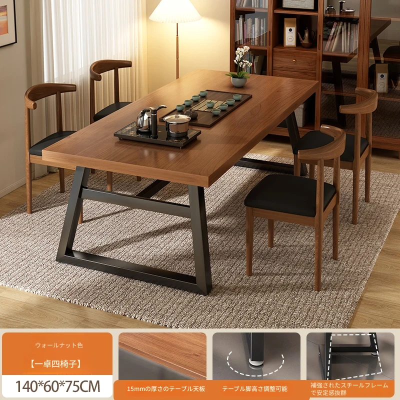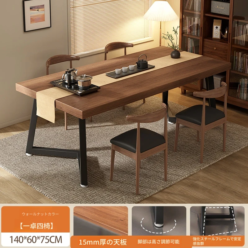 【アップグレード強化版一卓四椅】ウォールナット色140*60*75★アイアンバッファロー椅子