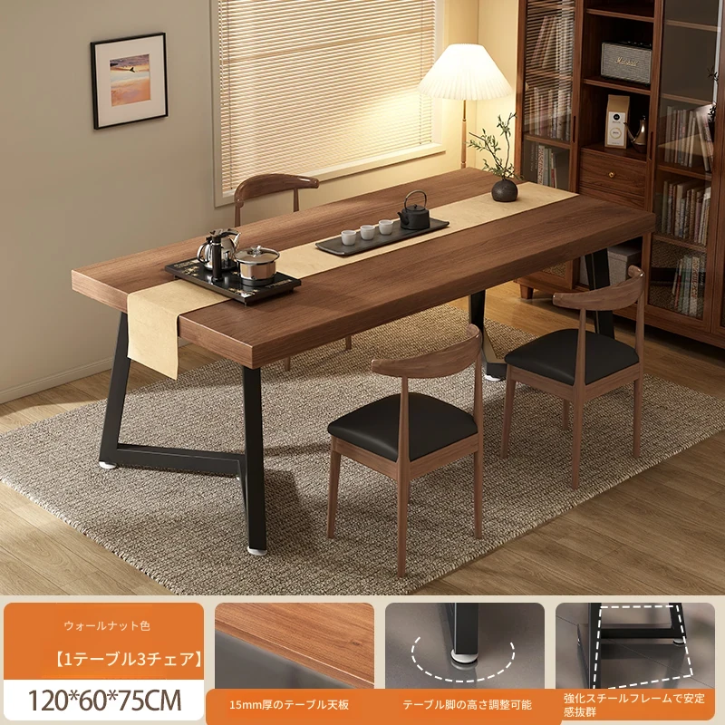 【アップグレード強化版一卓三椅】ウォールナット色120*60*75★アイアンバッファロー椅子
