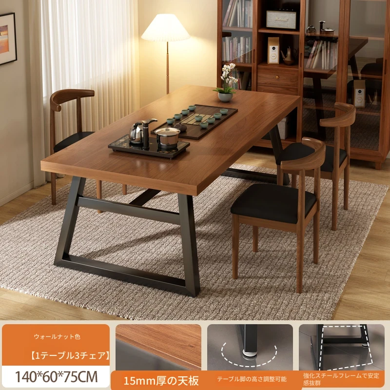【アップグレード強化版一卓三椅】ウォールナット色140*60*75★アイアンバッファロー椅子