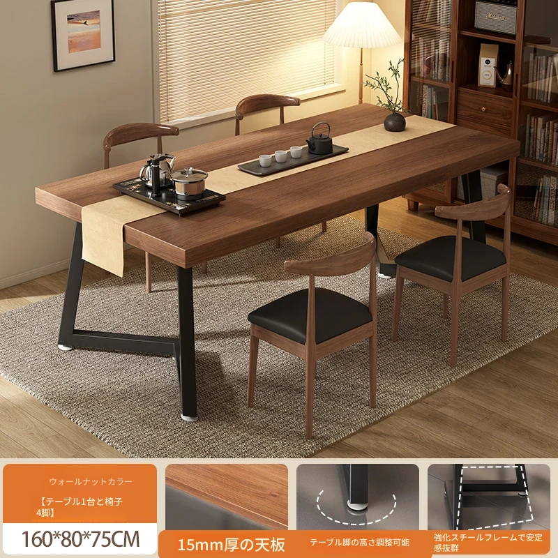 【アップグレード強化版一卓四椅】ウォールナット色160*80*75★アイアンバッファロー椅子