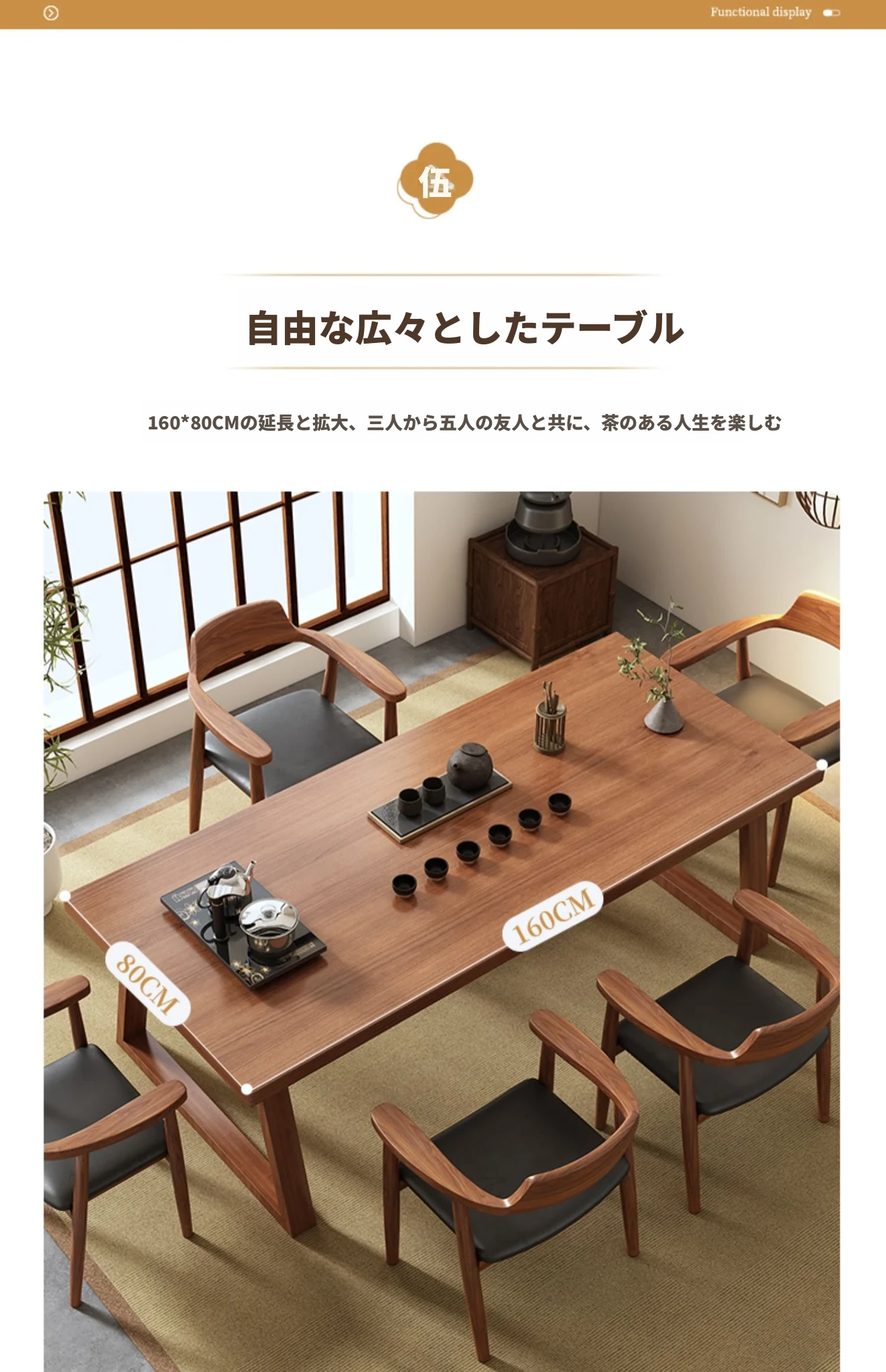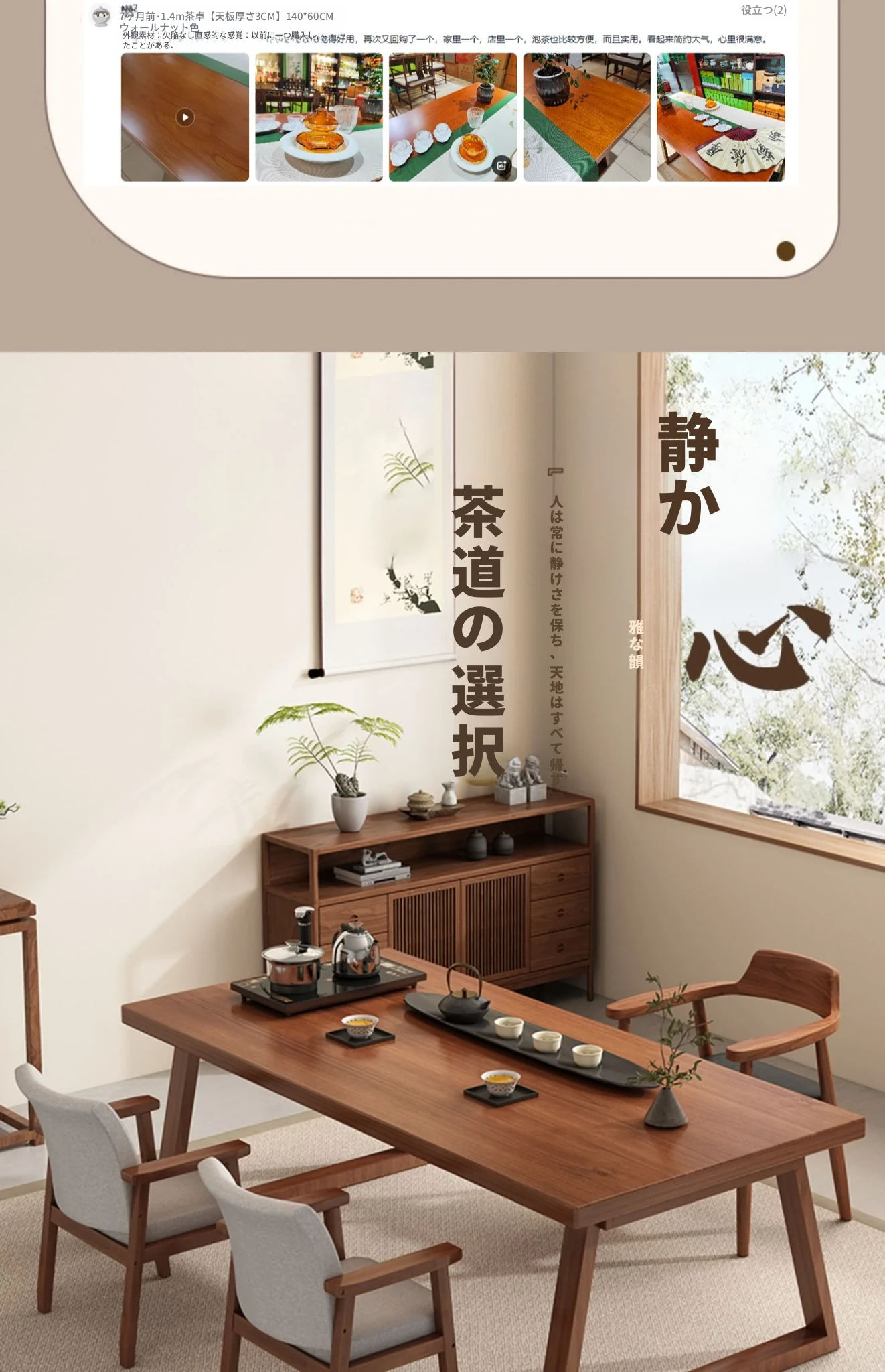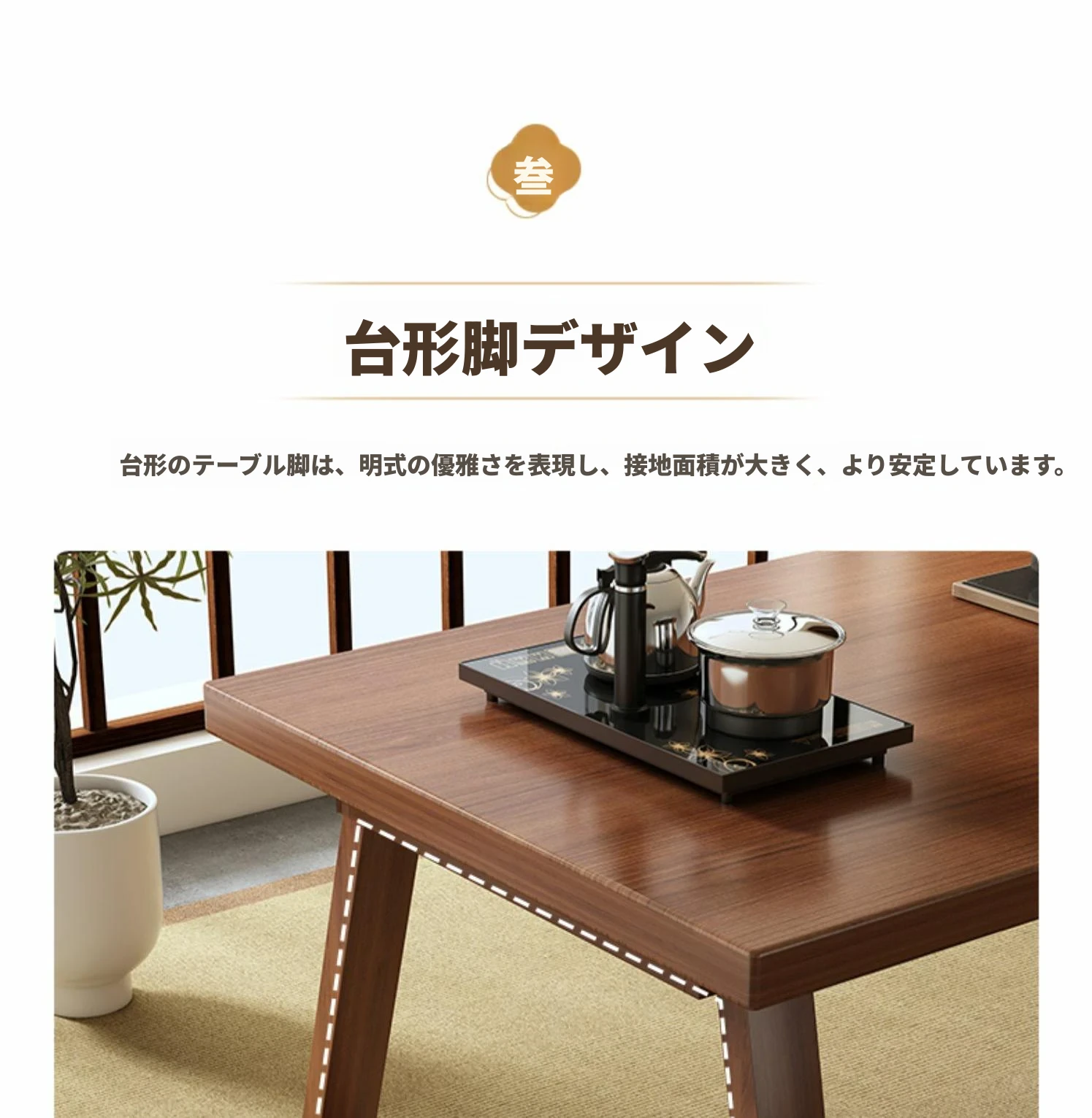 新中式茶卓椅セット - おしゃれなウォールナット色のティーテーブル、コンパクトなデザインで小さな部屋やオフィスに最適。自宅でのリラックスタイムを演出し、お茶を楽しむひとときをお届けします。