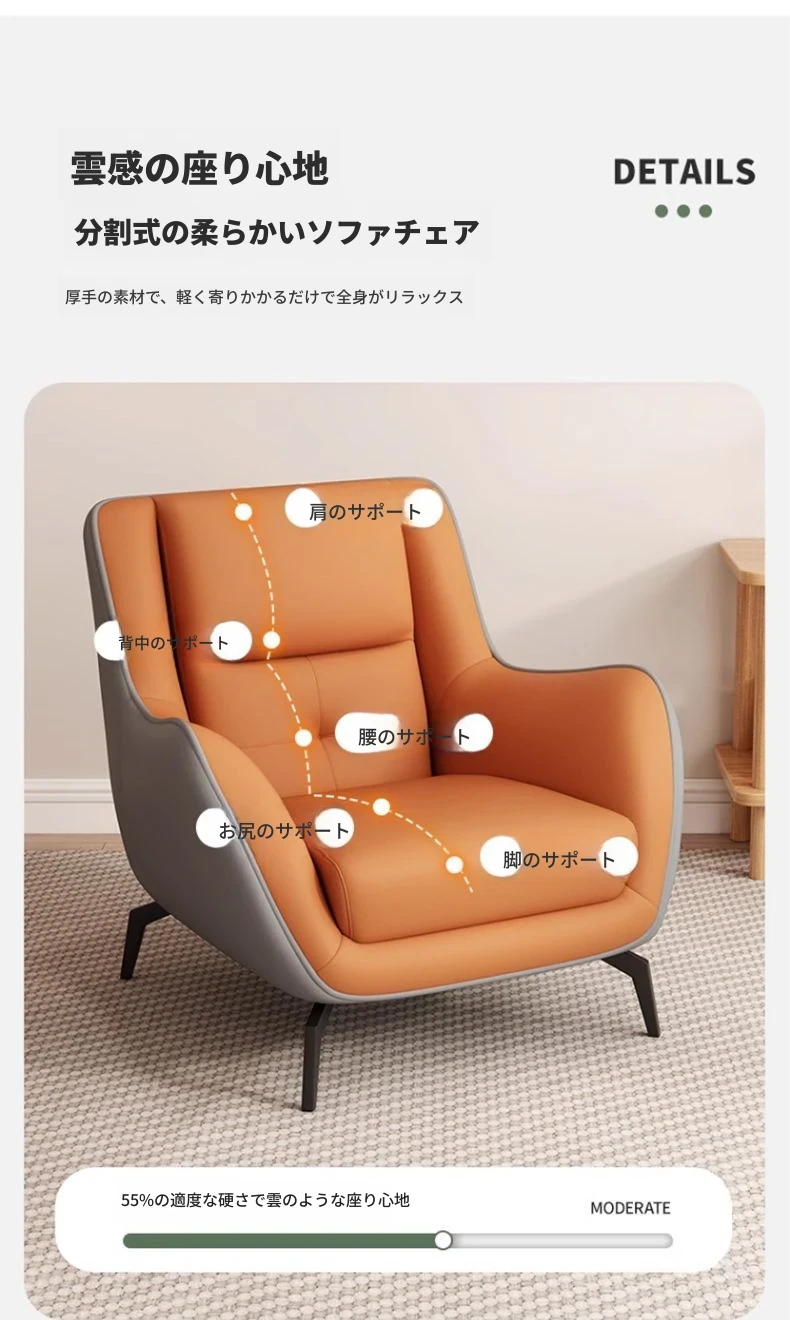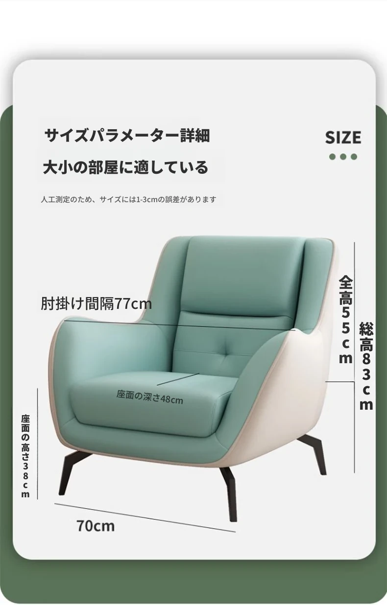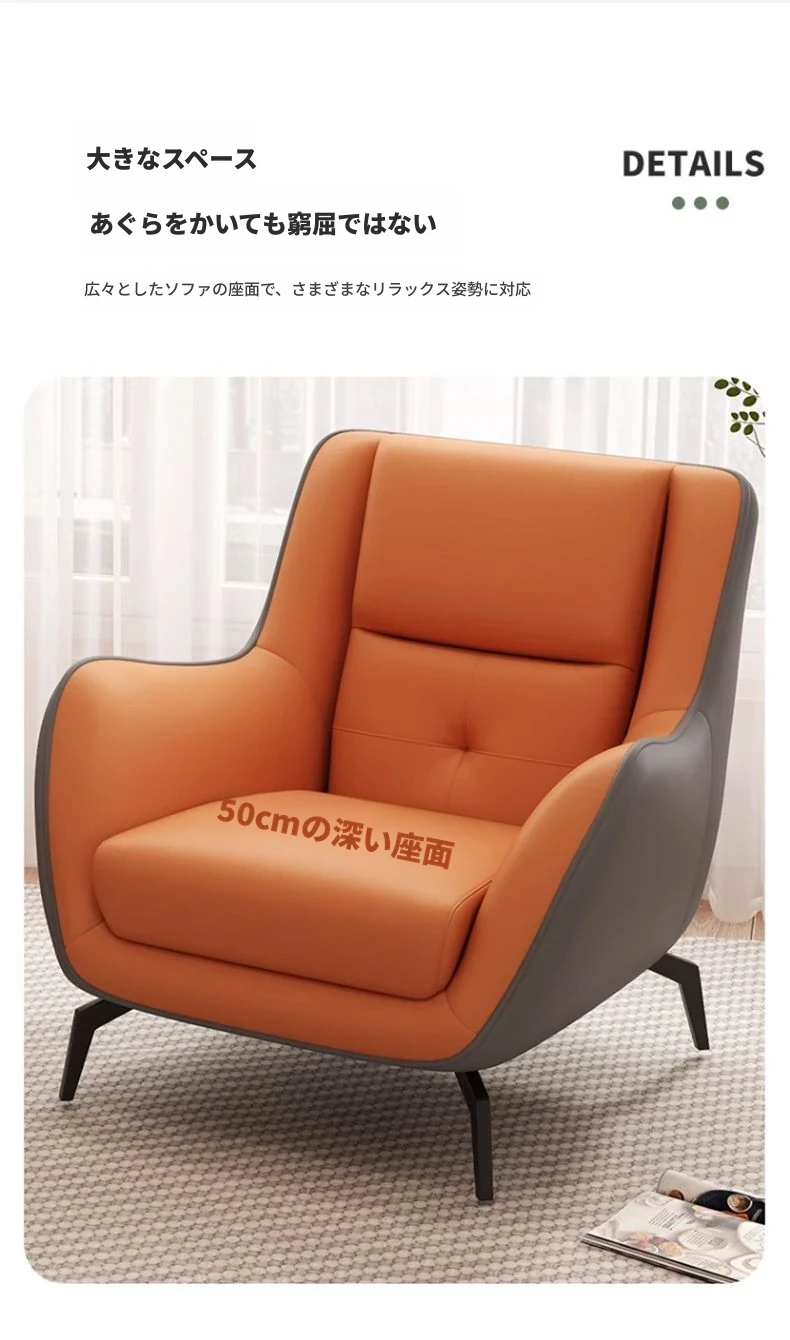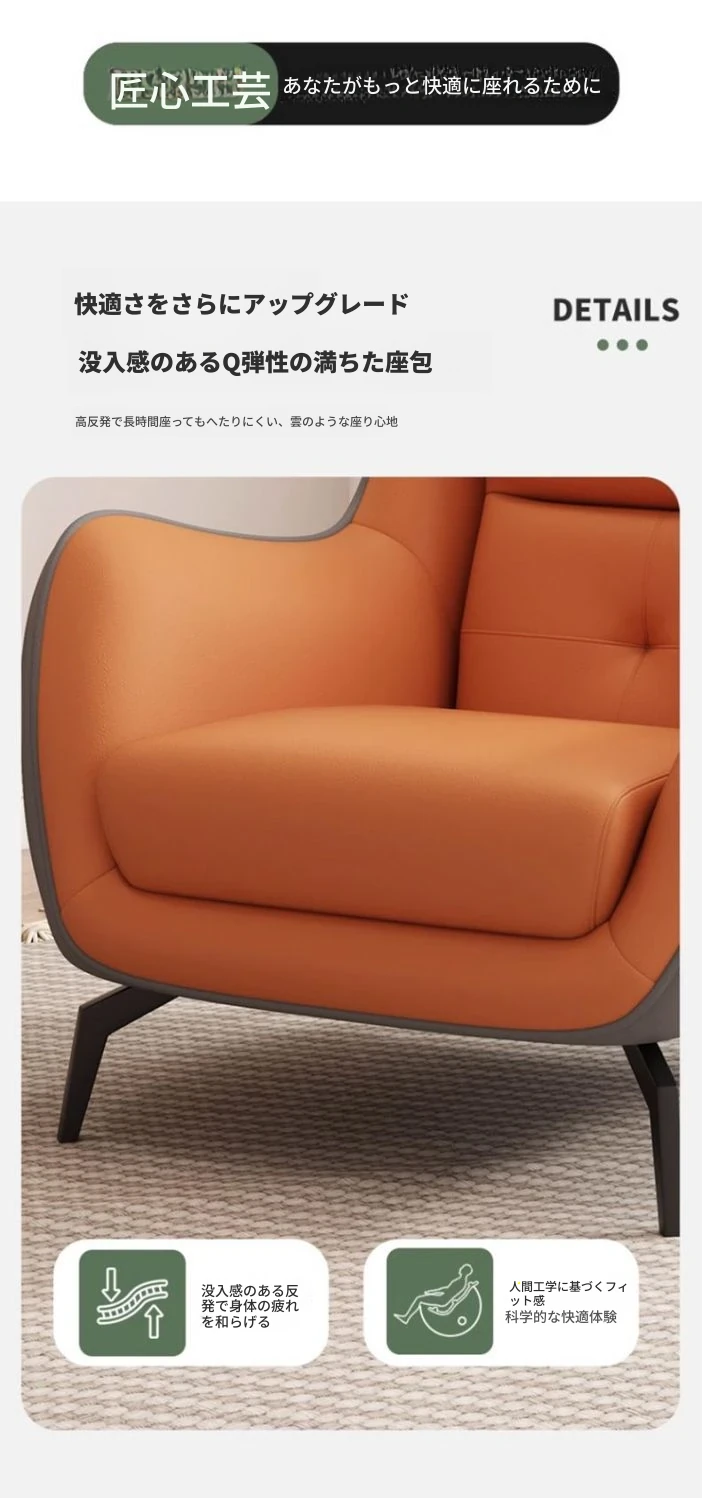 快適なイタリアンソファ - 小さな部屋にぴったりの北欧モダンデザイン!軽やかなラグジュアリー感とテクノロジー布を使用した、リビングや寝室に最適なレザー調の一人用ソファ。リラックスしたいあなたに最適です!