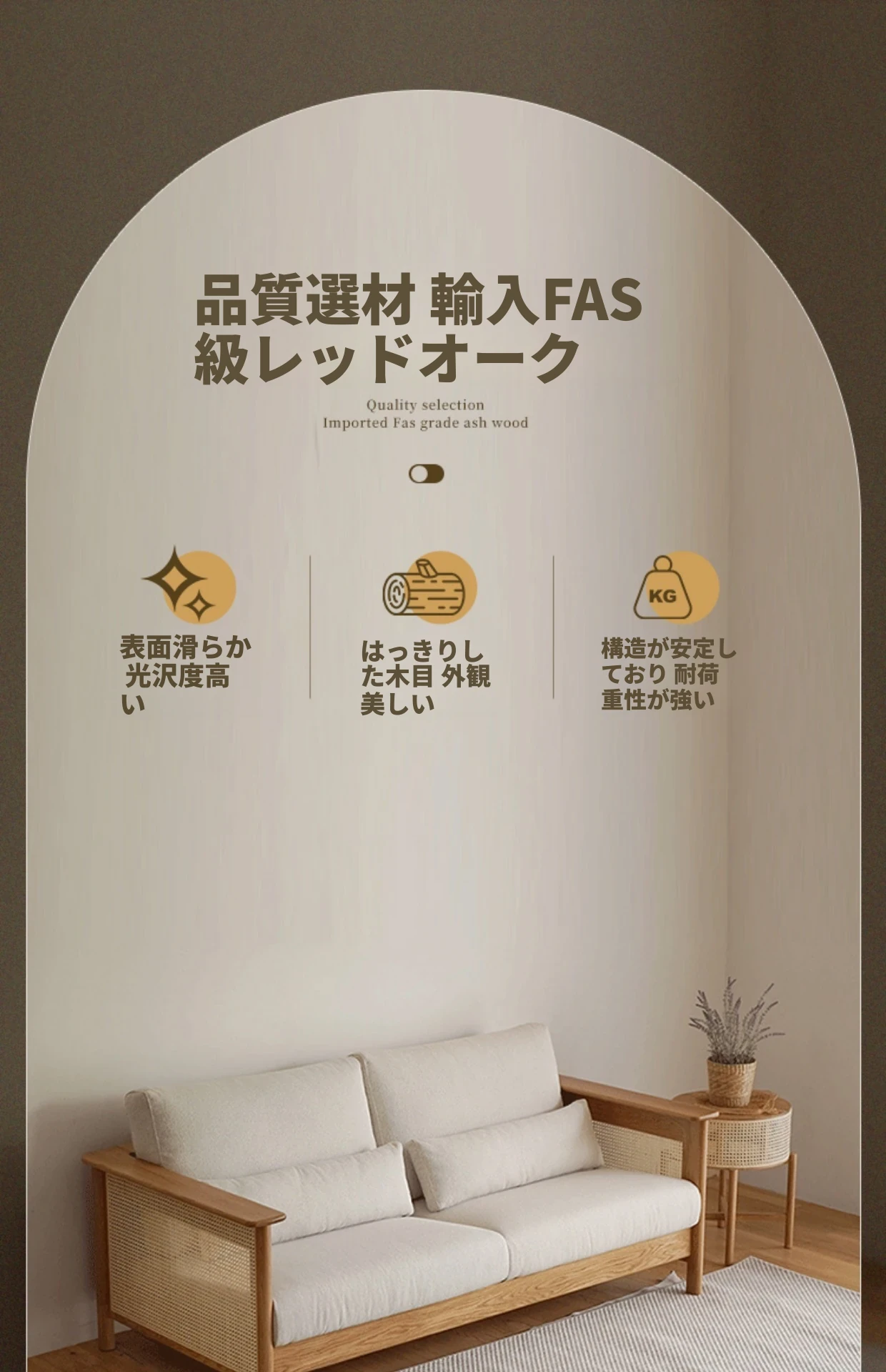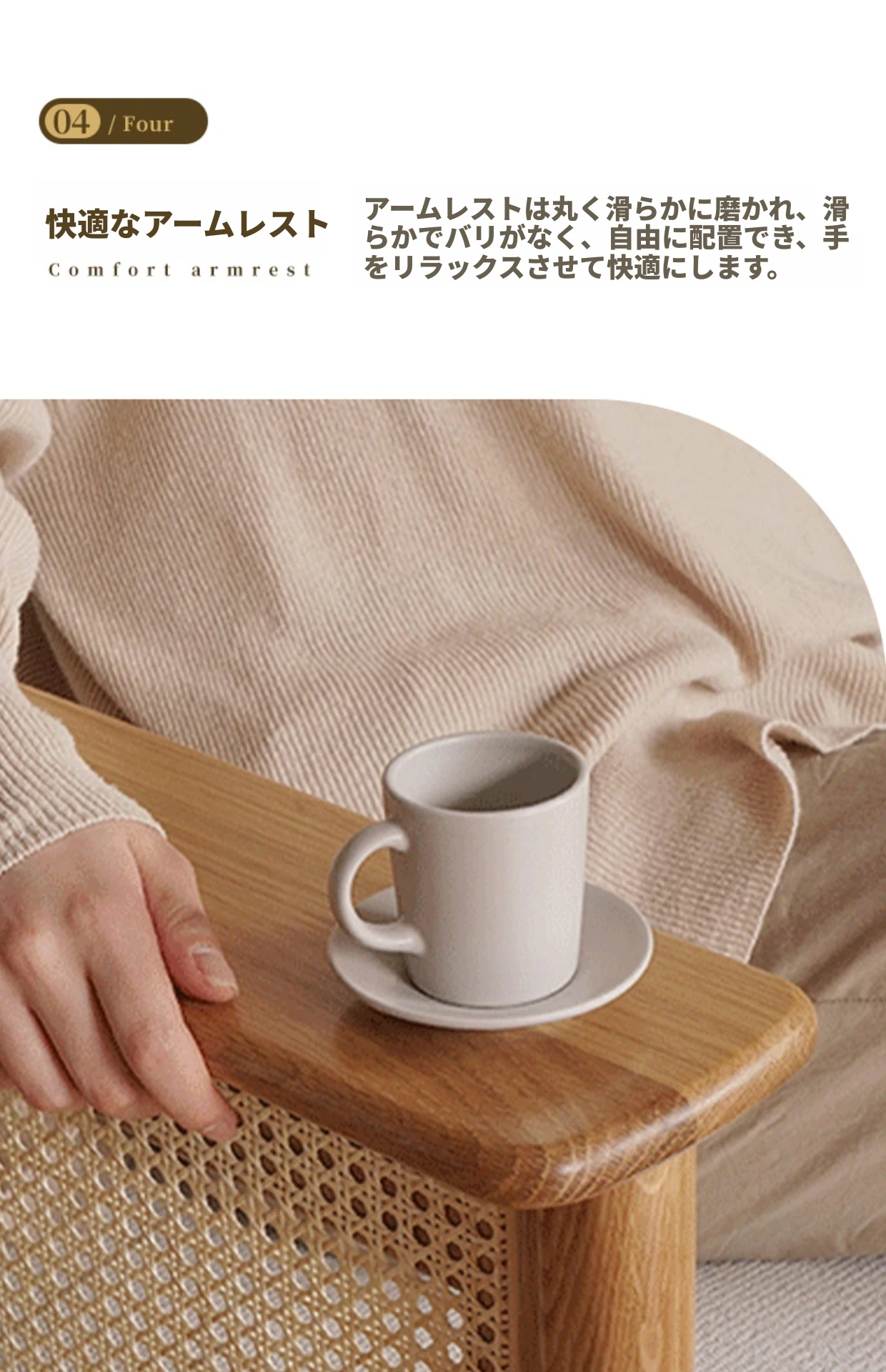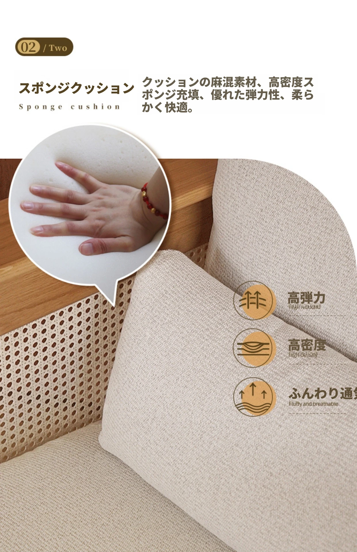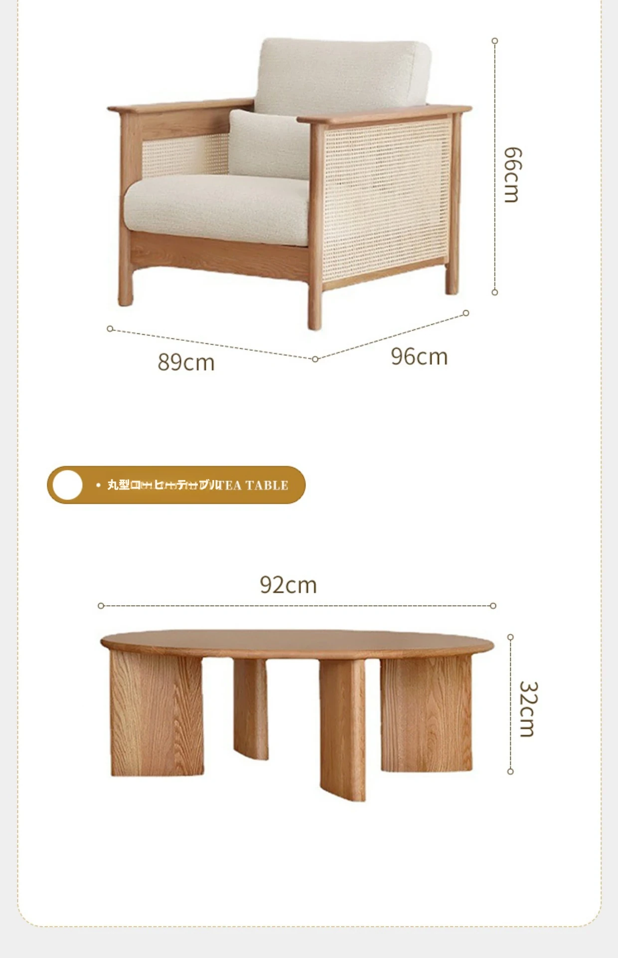 和風リビングにぴったり!天然素材の藤編みソファセット - 小スペースでも映えるモダンデザイン、赤オークの無垢材と布製クッションで快適なひとときを。