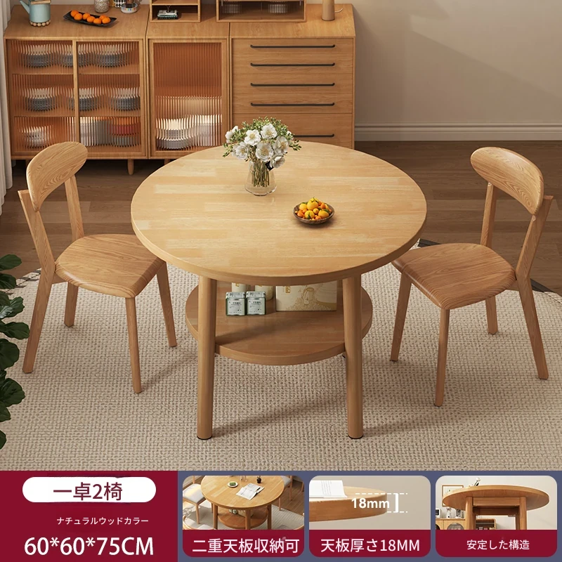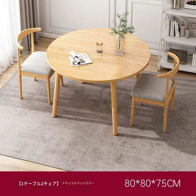 【一卓2椅子★丸テーブル】田舎風オーク色80*80*75cm