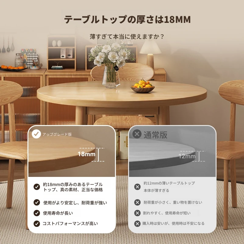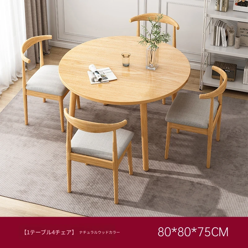 【一卓4椅子★丸テーブル】田舎風オーク色80*80*75cm