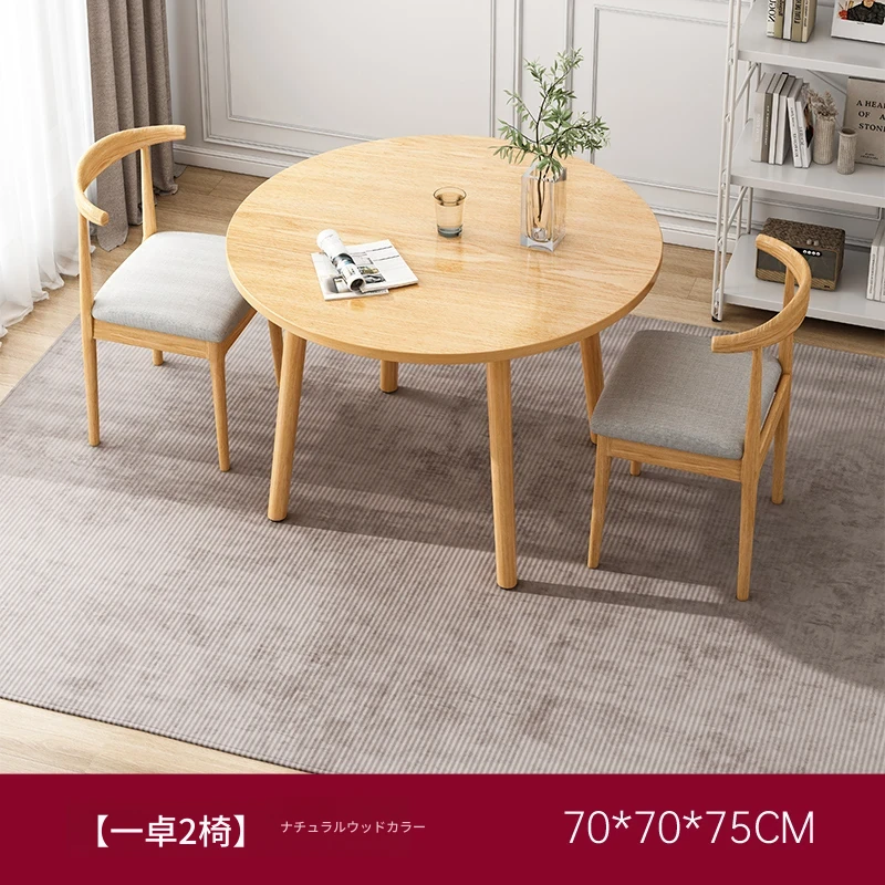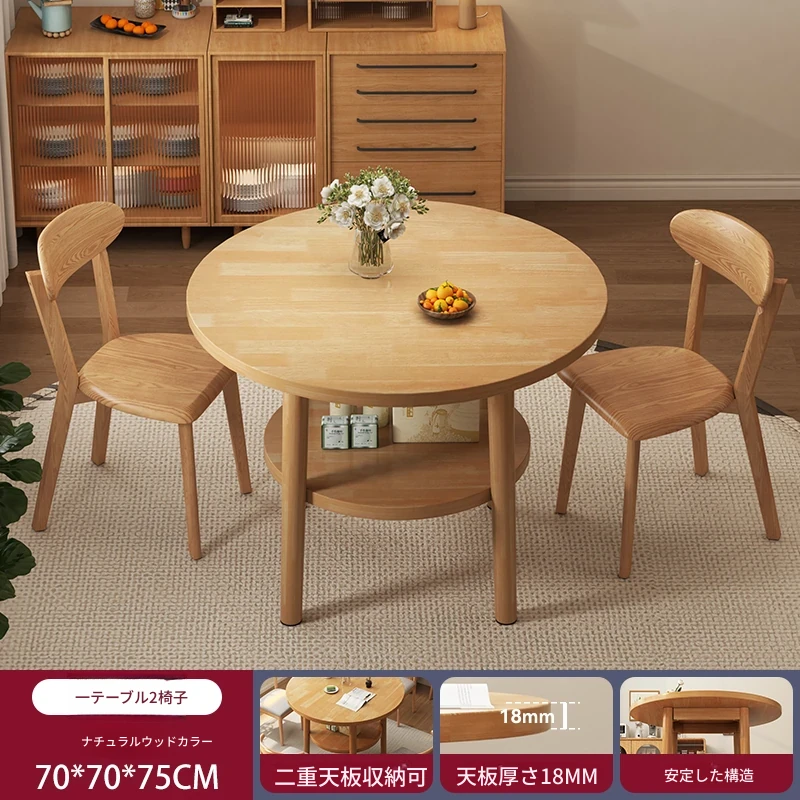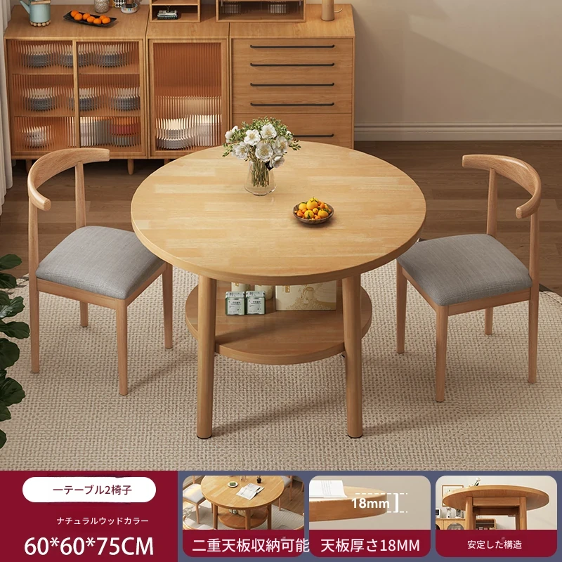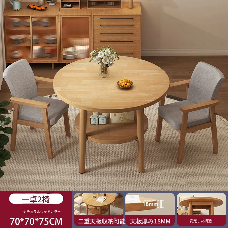 【一卓2椅子★丸テーブル】田舎風オーク色70*70*75cm