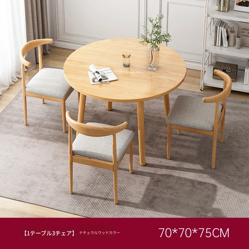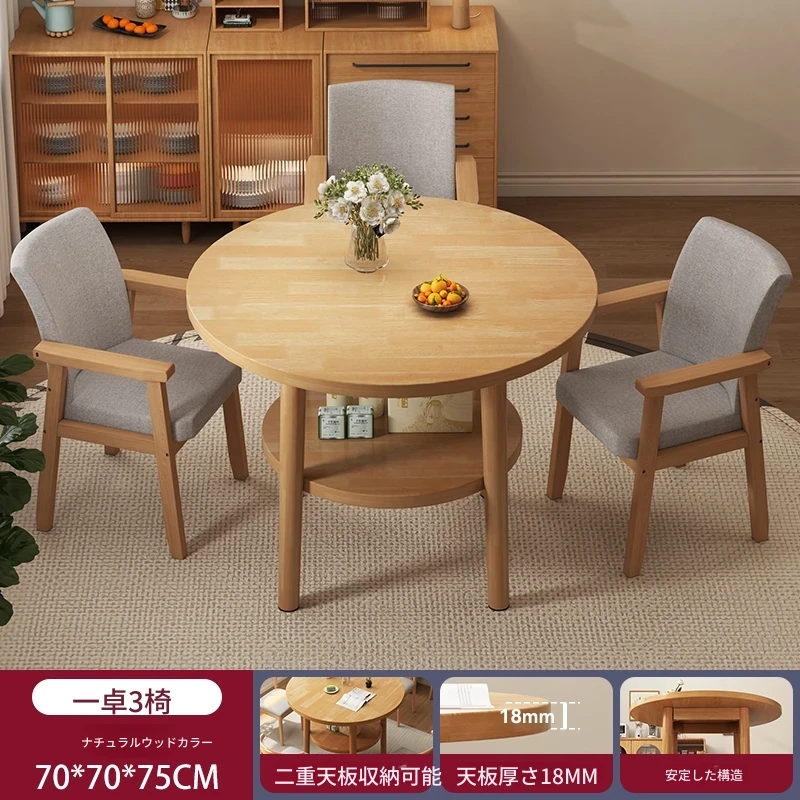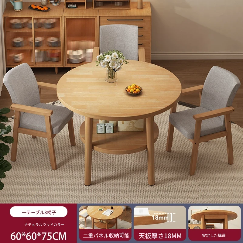【一卓3椅子★丸テーブル】田舎風オーク色70*70*75cm