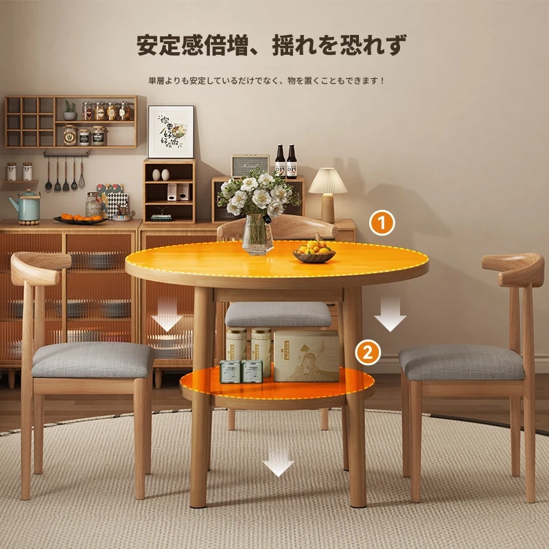小型おしゃれな2段テーブル|省スペースのモダンデザイン|バルコニーやリビングに最適なサークル型ダイニングテーブル&チェアセット|家族や友人との素敵なひとときを演出!