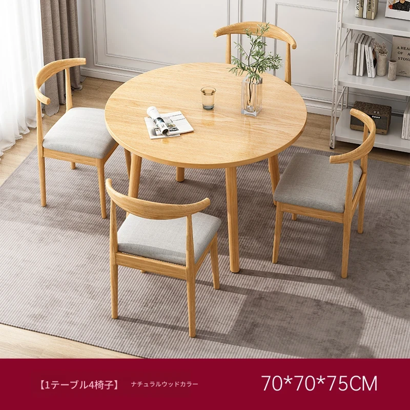 【一卓4椅子★丸テーブル】田舎風オーク色70*70*75cm