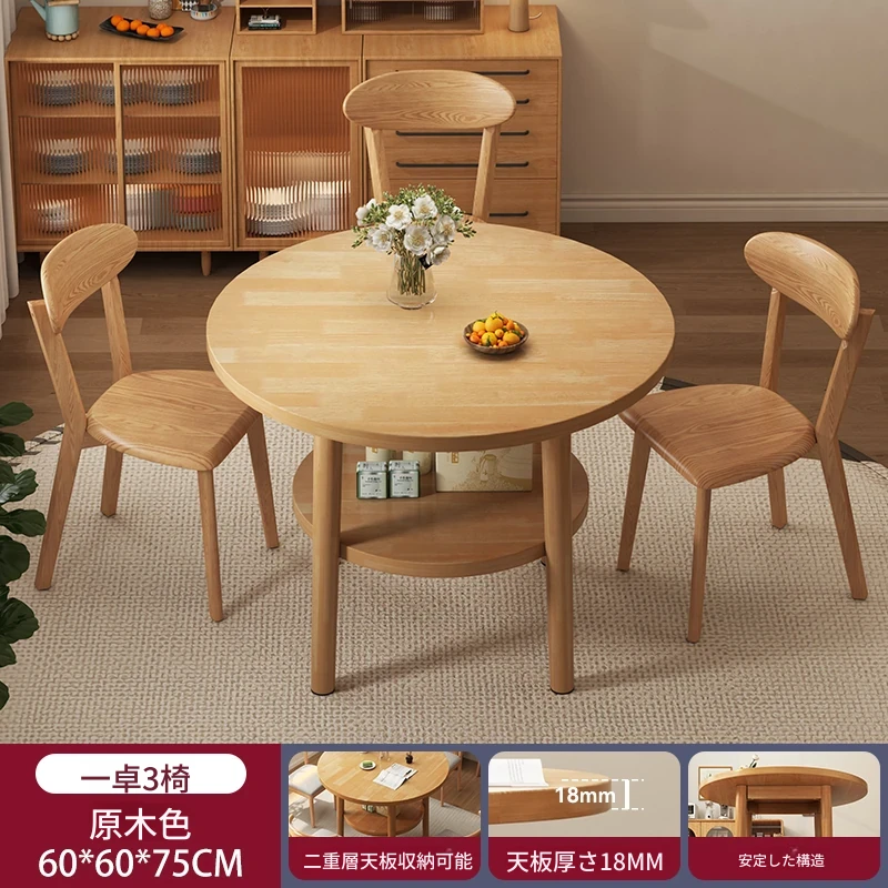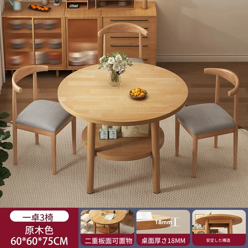 【一卓3椅子★丸テーブル】田舎風オーク色80*80*75cm