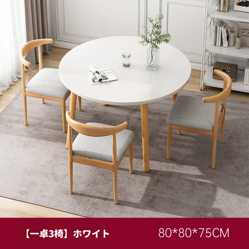 【一卓4椅子★丸テーブル】暖白色80*80*75cm