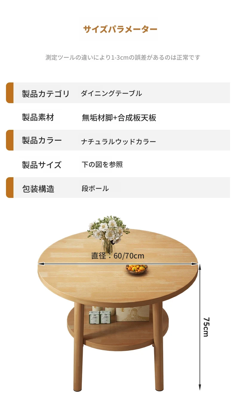 【メイン画像商品★丸テーブル】暖白色70*70*75cm