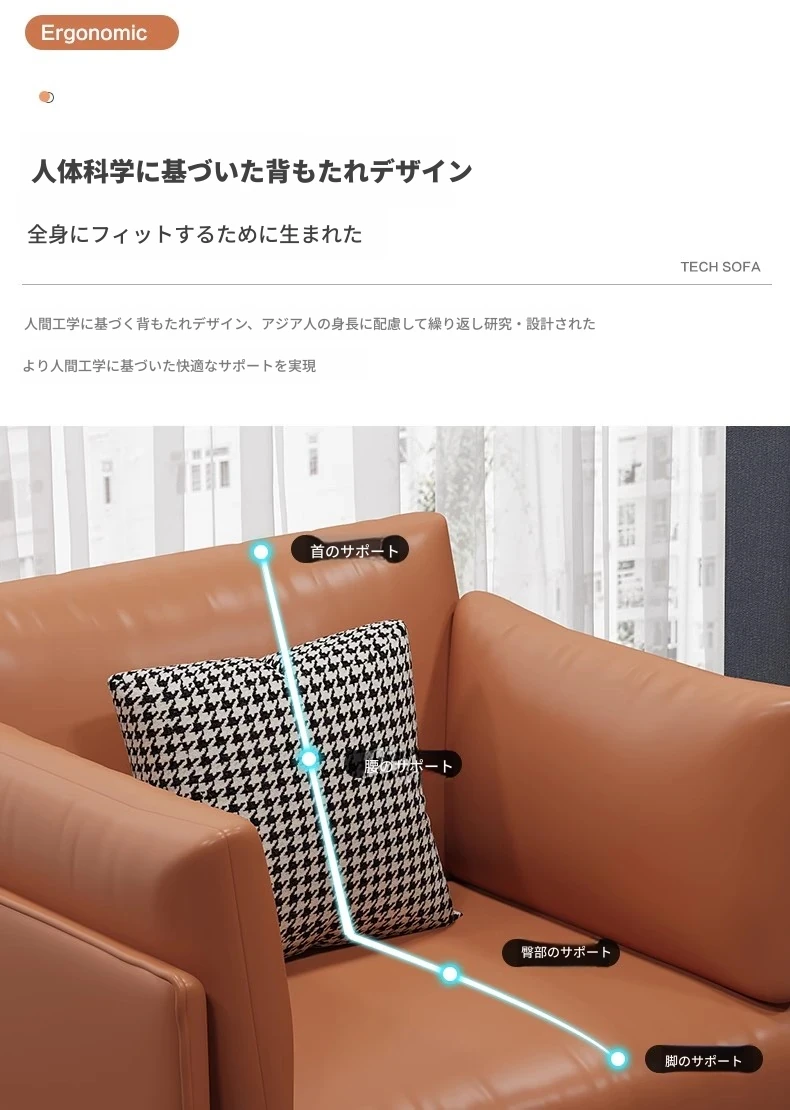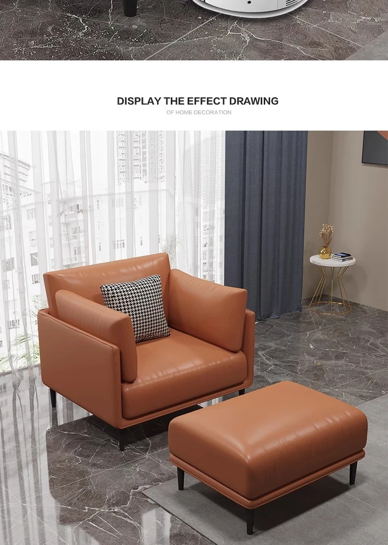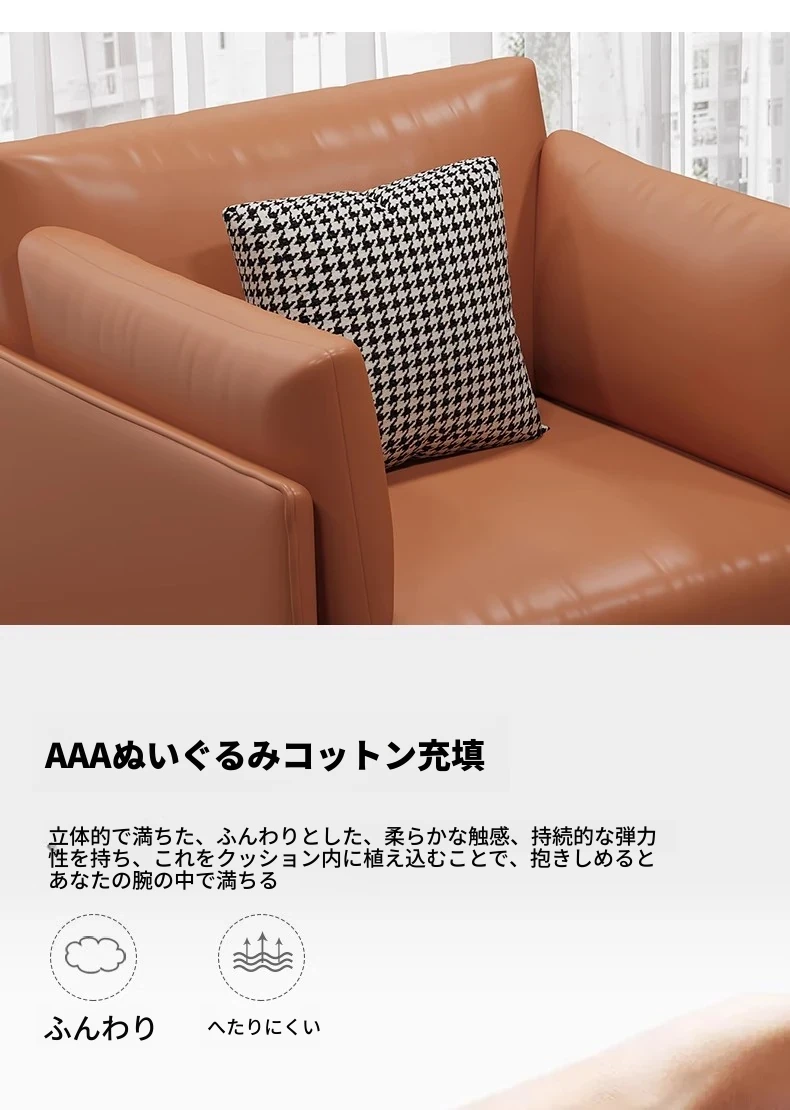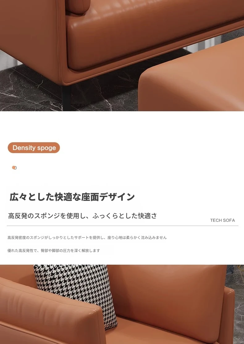 単人+フットスツールラテックス版 【オレンジ】超ファイバー皮 クッション付き