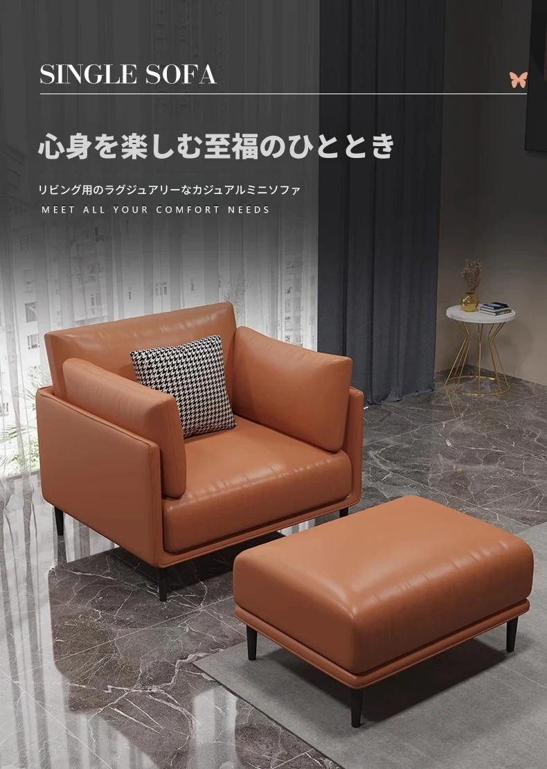 単人+フットスツール 【オレンジ】超ファイバー皮 クッション付き