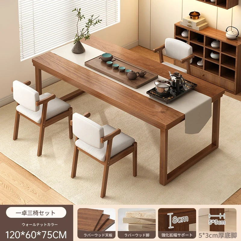 【豪華モデル-全ゴムの木★1卓3ワイド椅子】120cm