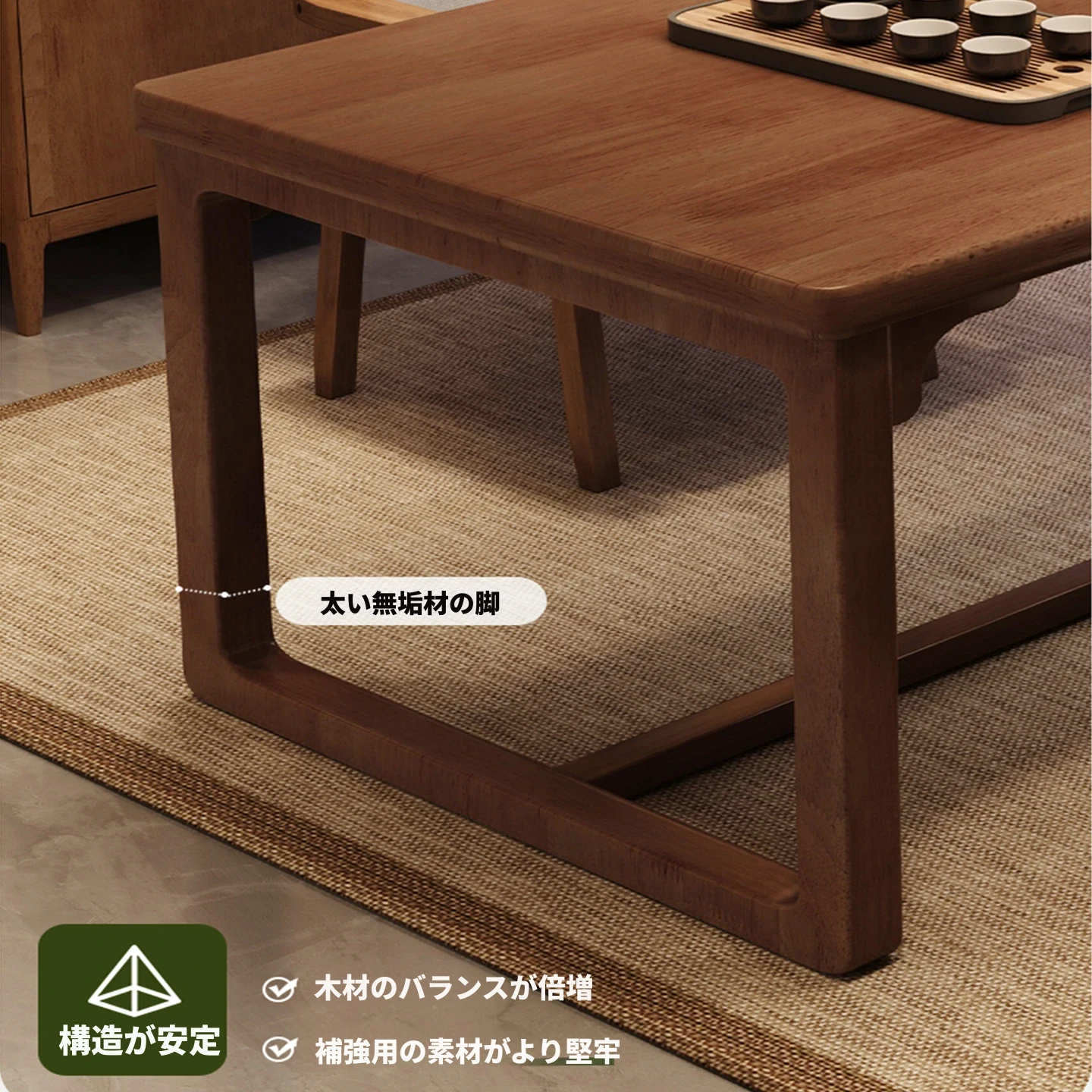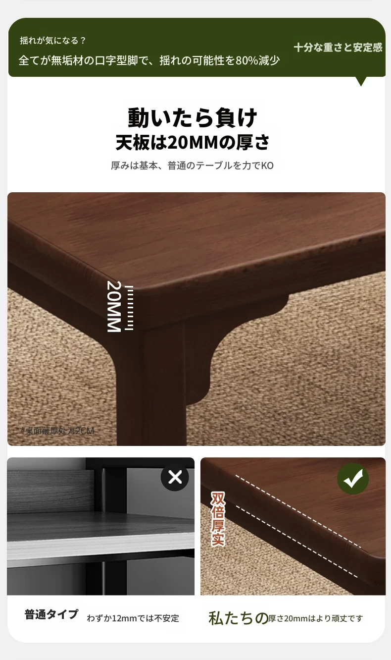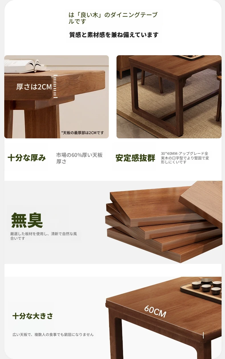 【太い無垢材の脚】100cm★合板厚テーブル