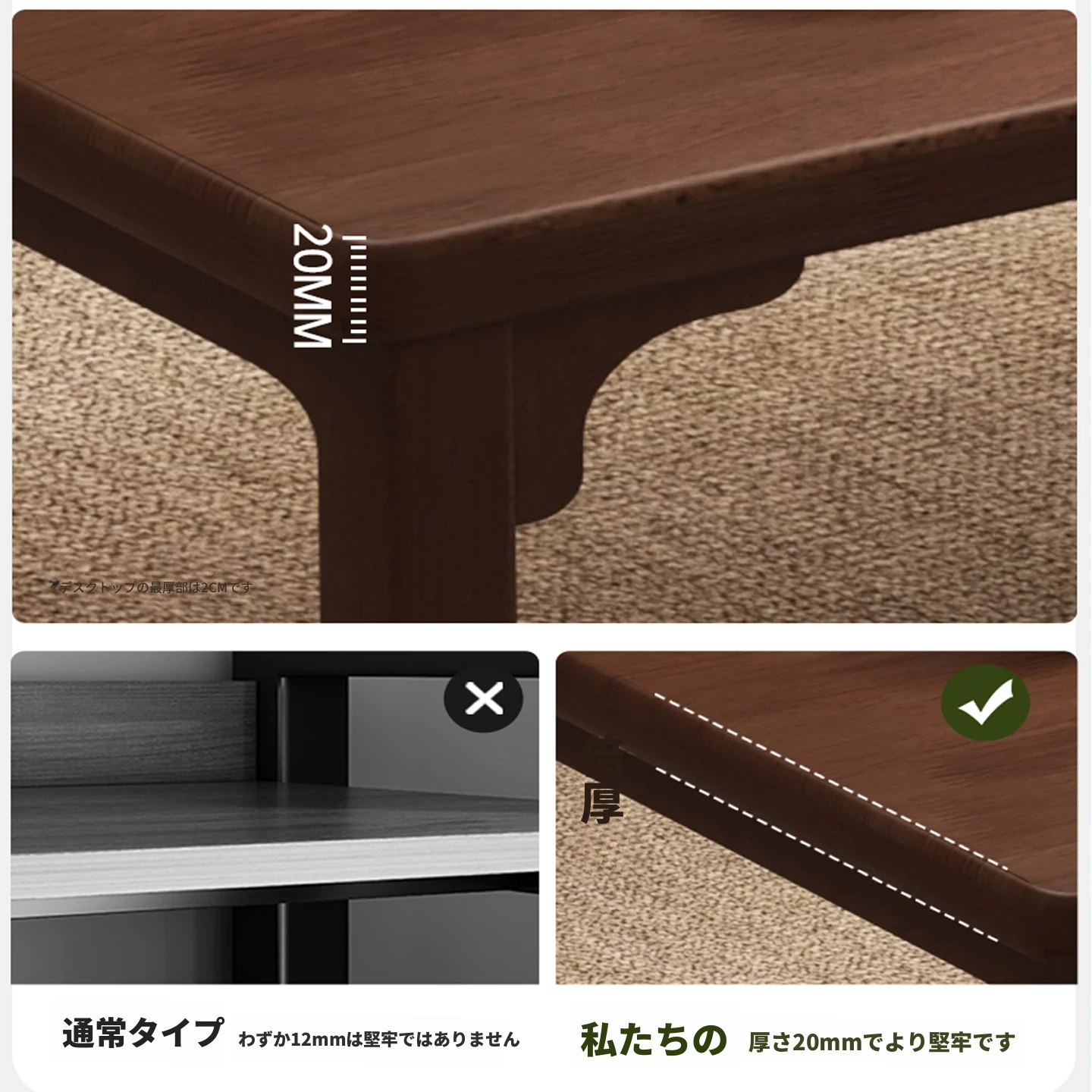 【太い無垢材の脚】120cm★合板厚テーブル