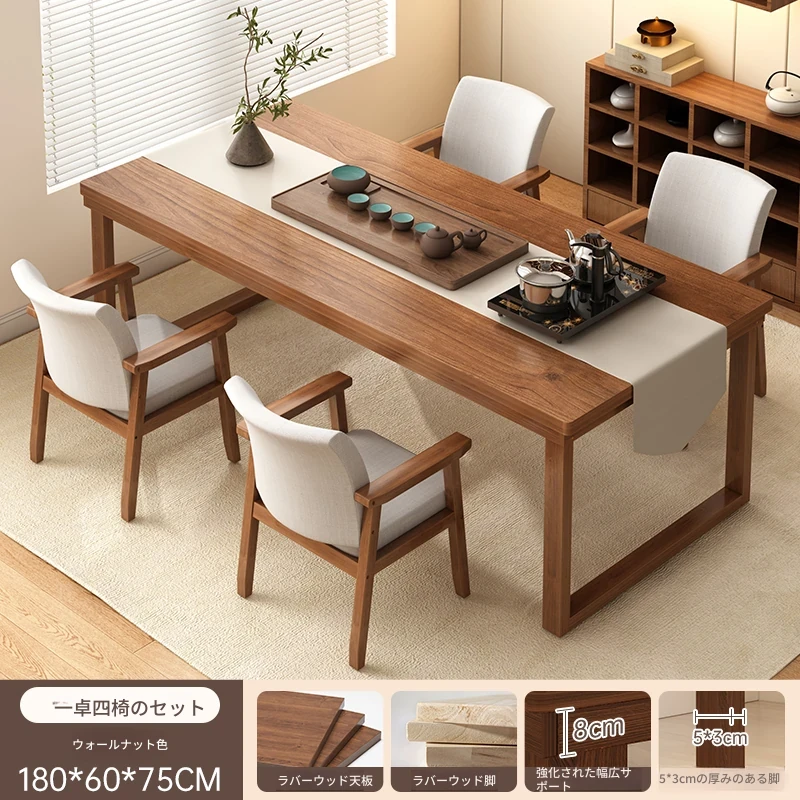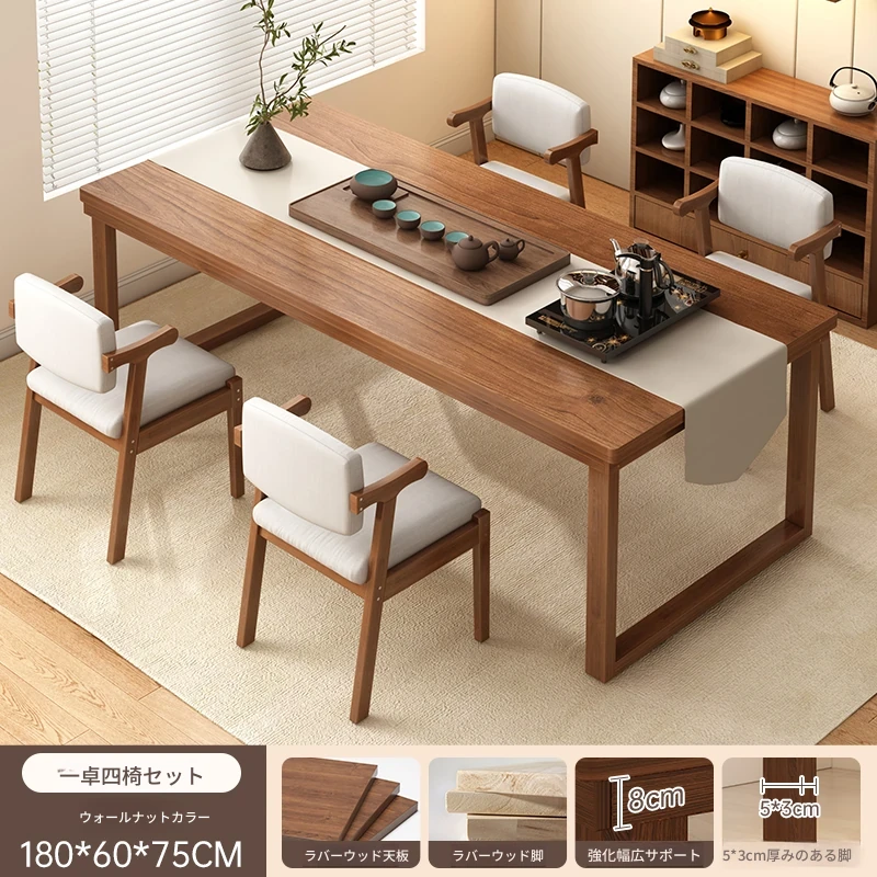 【豪華モデル-全ゴムの木★1卓4椅子】ウォールナット色180CM