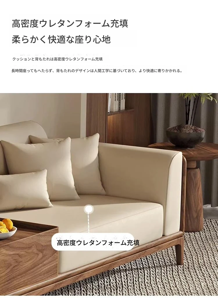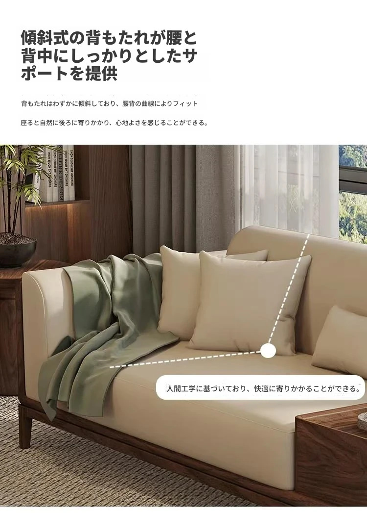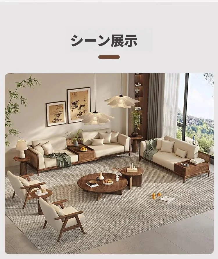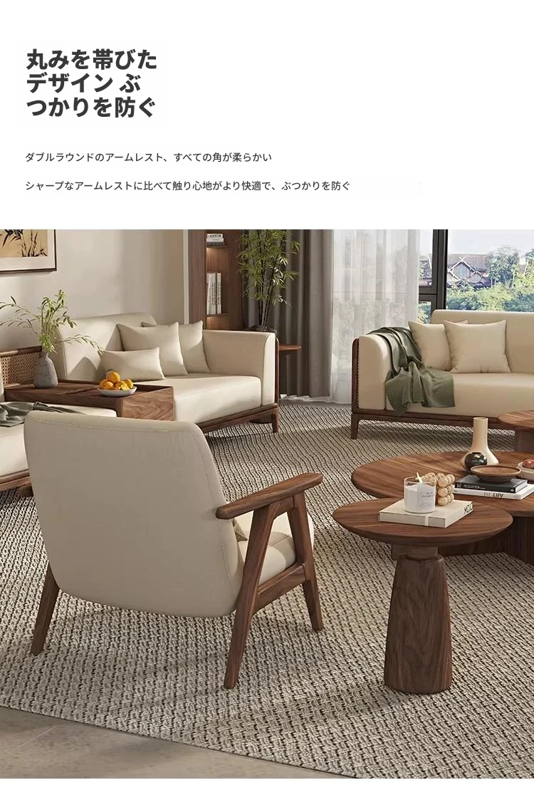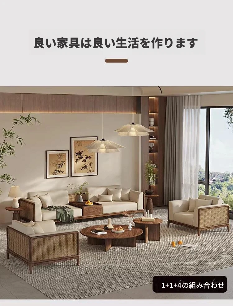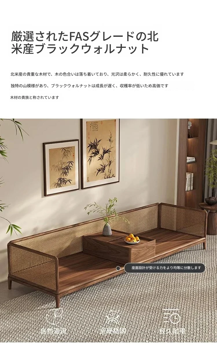 北米ブラックウォルナットのソファセット|全て無垢材使用のモダンな小型リビングに最適!侘び寂び風の新しい中華スタイル家具で、あなたの空間を特別なものに。