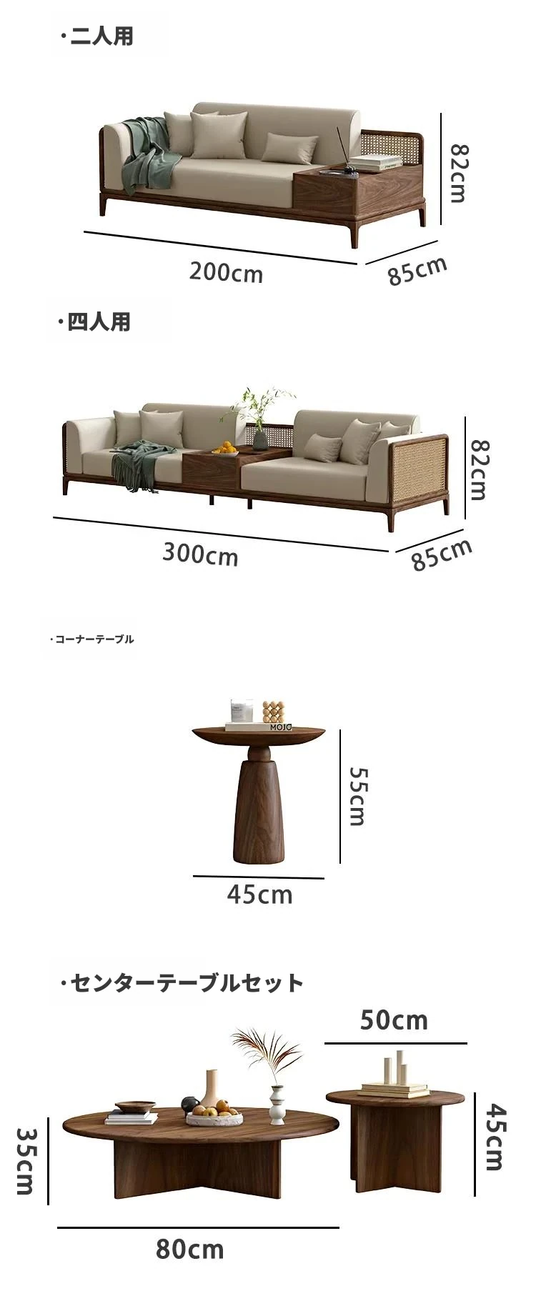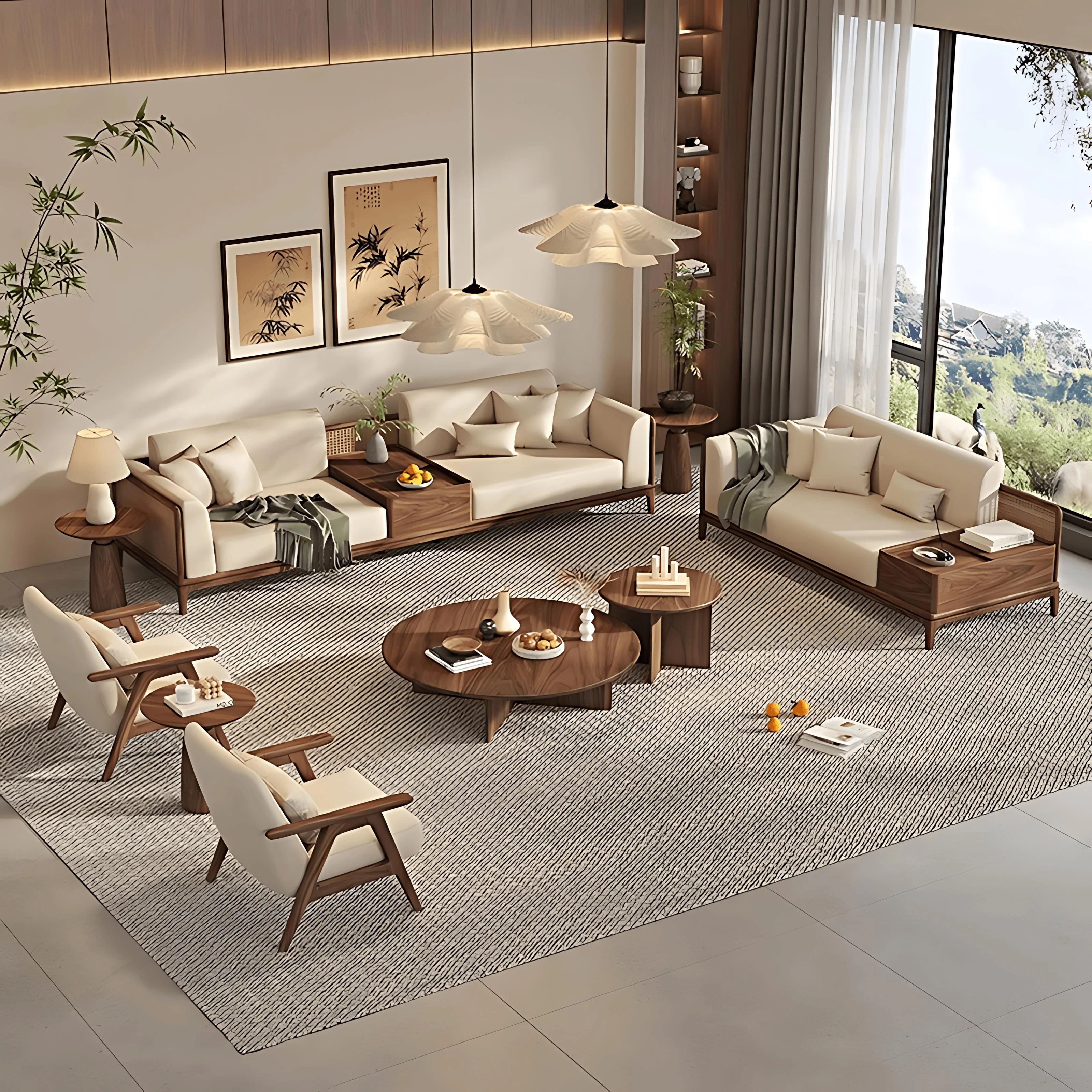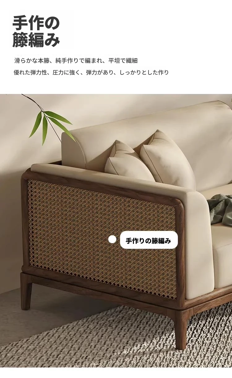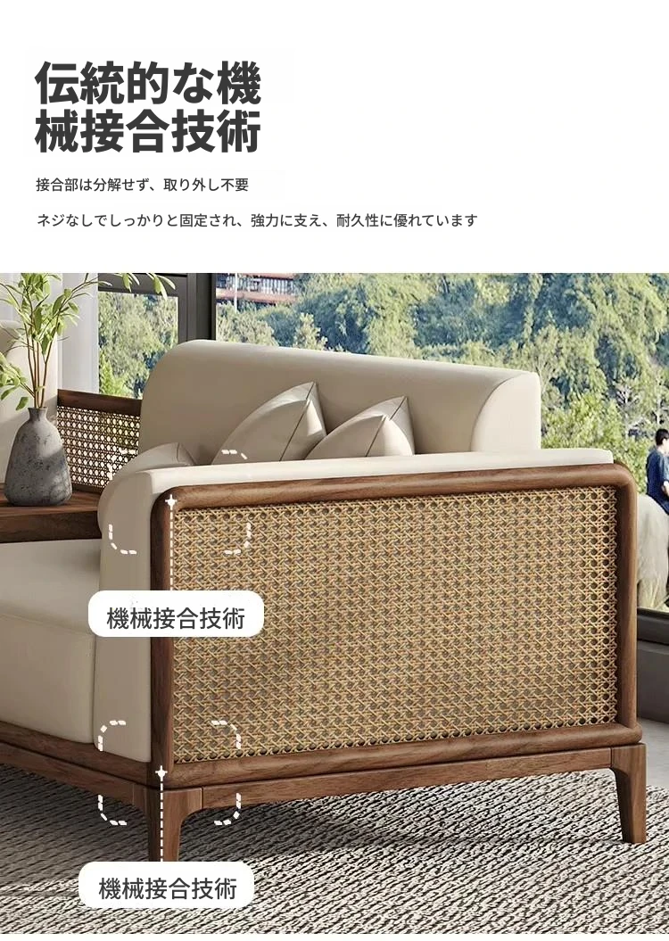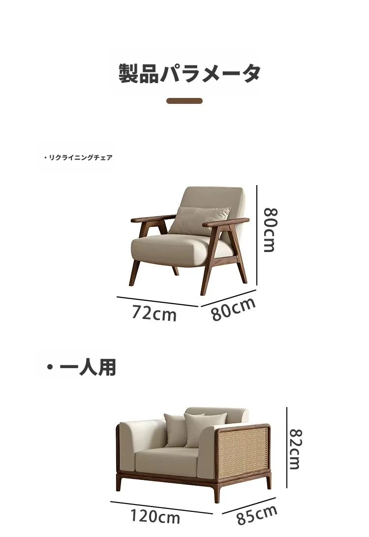 北米ブラックウォルナットのソファセット|全て無垢材使用のモダンな小型リビングに最適!侘び寂び風の新しい中華スタイル家具で、あなたの空間を特別なものに。